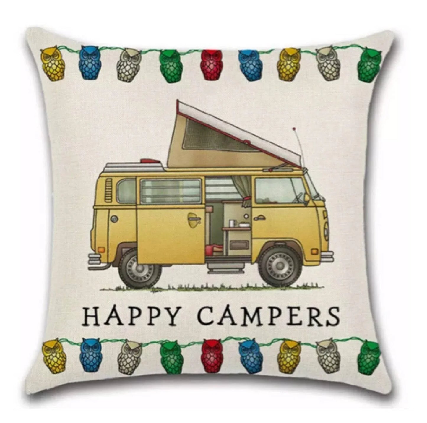 Cushion Cover Happy Campers Camper Van Vintage Yellow