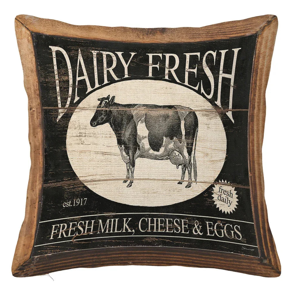Cushion Cover Vintage Dairy Fresh Milk Cheese Eggs Cow
