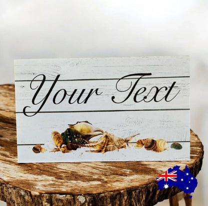 Made in Australia by a dedicated Husband and Wife team, this Custom Personalised Timber Seashells Coastal Sign with Nautical Coastal Beach style is perfect for both indoor and outdoor use, comes in waterproof acrylic or cost effective MDF options. Ideal gift for any business or family occasion, and can be personalised to fit your needs. With endless custom possibilities, this sign is perfect for business signage, shop displays, café menus, noticeboards, and special announcements for retail stores, weddings, birthdays, gardens, or for adding a personal touch to your home decor. Prices include Delivery Australia Wide