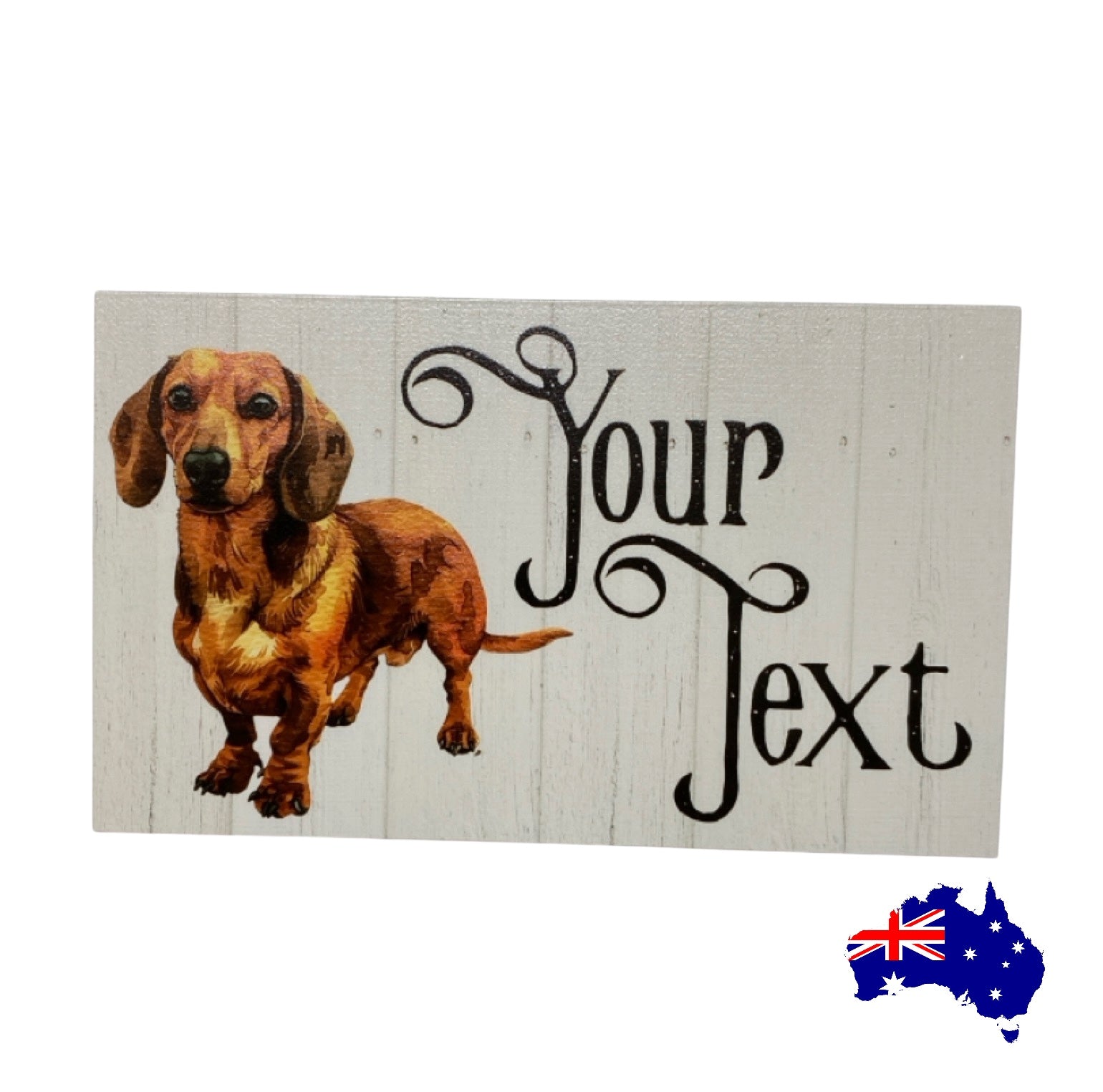 Personalize this Dachshund Brown Tan Dog Custom Sign with your own wording for a unique touch. Crafted for indoor and outdoor durability, it makes an ideal gift for dog enthusiasts. Perfect for hanging on walls, fences, gates, shelves, or any space that needs a charming sign.