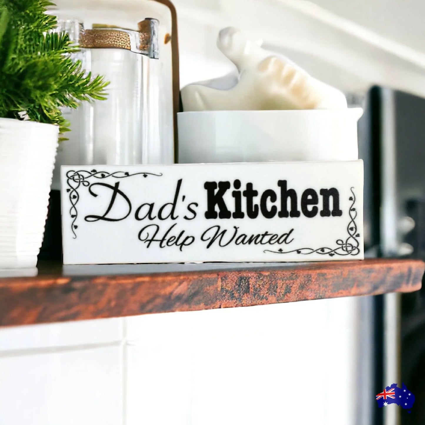 Looking for a way to bring a touch of warmth and love to your home? Look no further than Dad's Kitchen Help Wanted Sign - the perfect addition to any kitchen! Hang or display this sign, will not only add charm and character to your space, but also serve as a reminder of the heart and soul of your Dad's cooking. Don't miss out on this opportunity to bring a piece of Dad's love into your own kitchen.