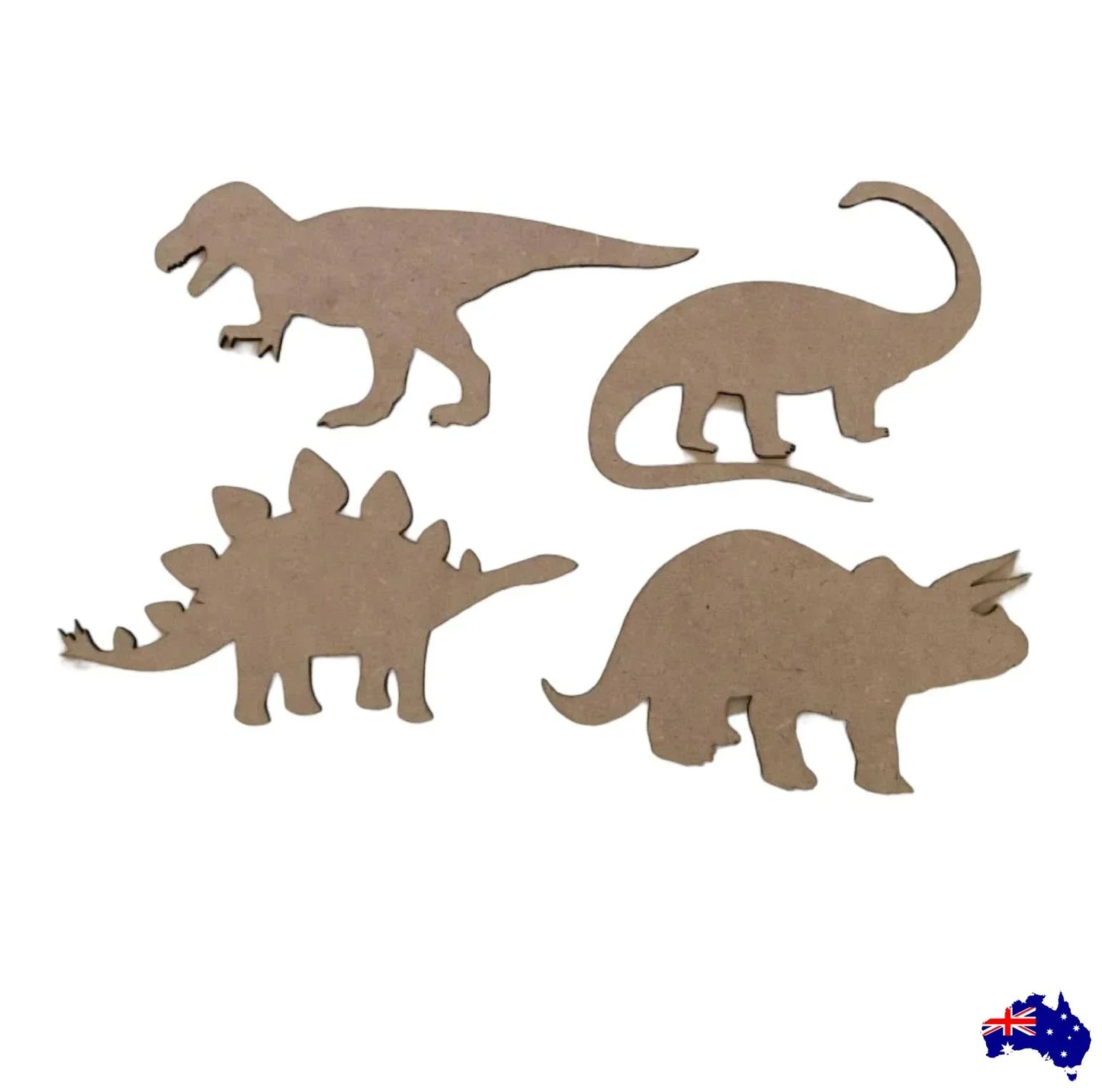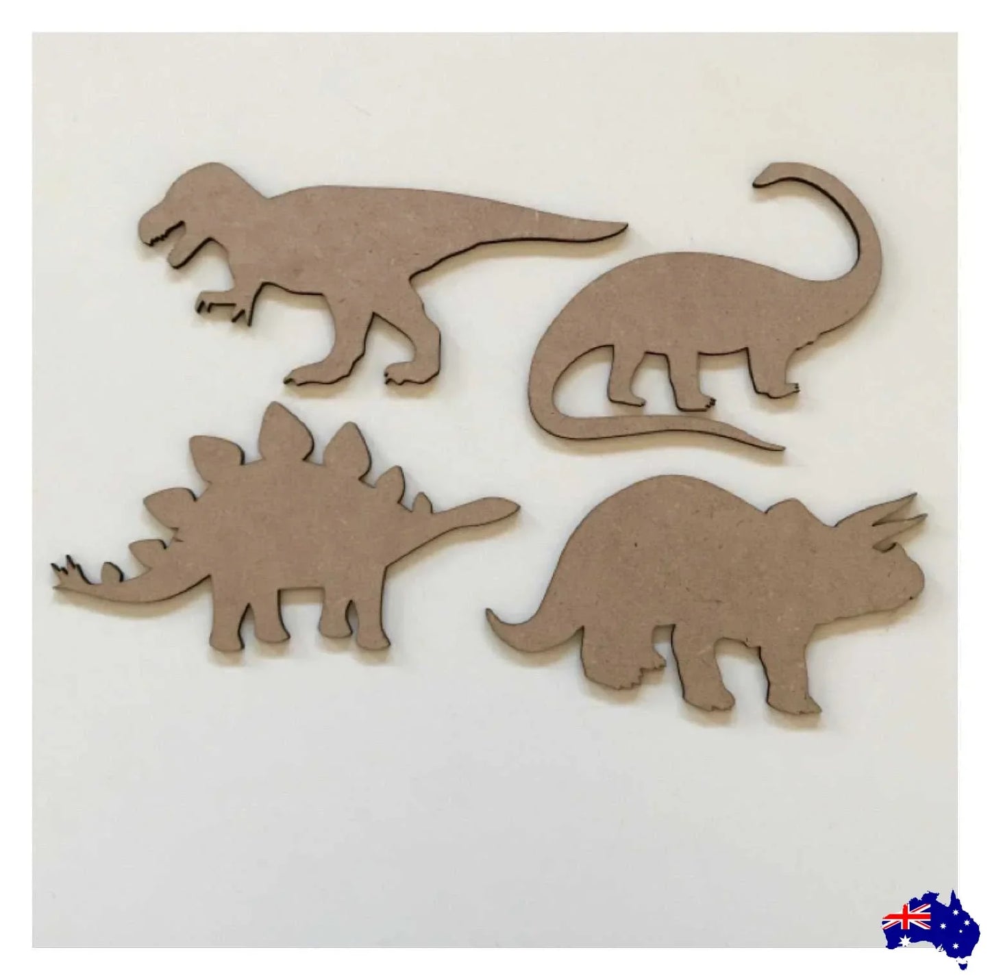 Dinosaur Set of 4 Timber MDF Raw DIY with Free Delivery. This cut is made in Australia by an Aussie! You are purchasing a brand new raw MDF cut out set perfect for using as is, use Paint or any other desired colour, material to suit your home decorating.