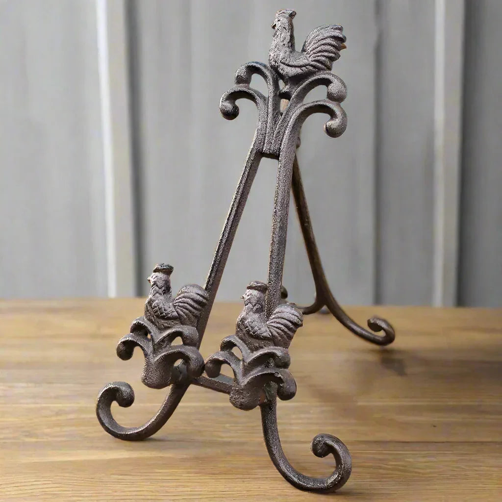 Display Stand Book Plate Easel Farmhouse Rooster Cast Iron