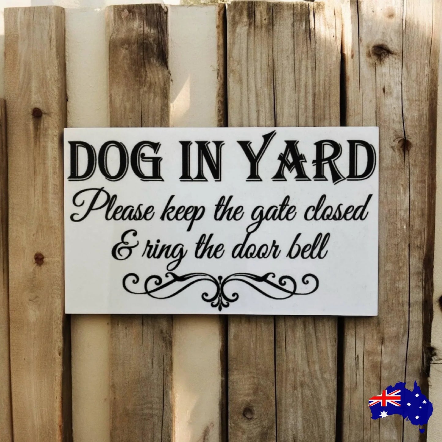 Dog In Yard Keep Gate Closed Ring Door Bell Sign