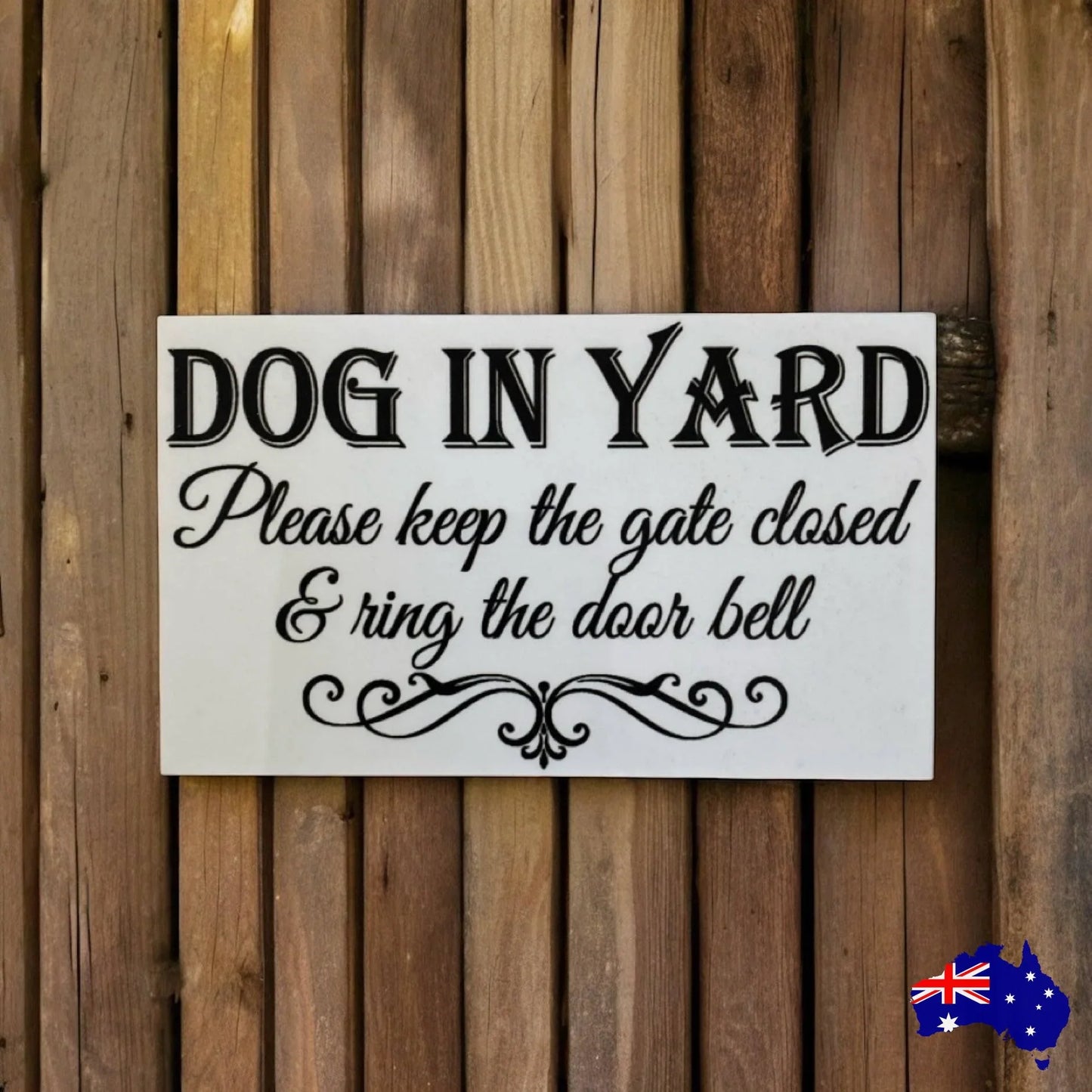 Show your pride in your property or business with our Dog In Yard Keep Gate Closed Ring Door bell Sign - a reminder to always ring the doorbell for entry, ensuring security and safety.
