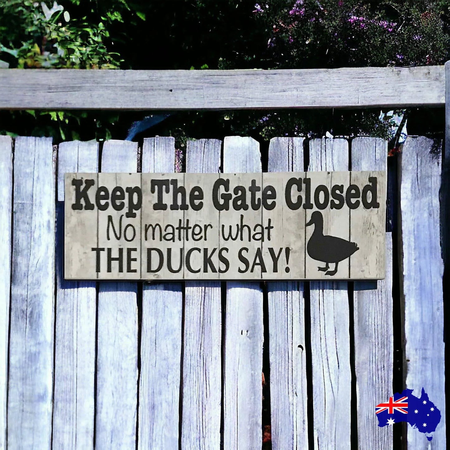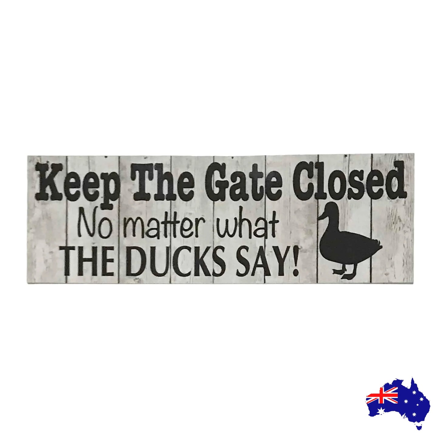 Ensure that the gate remains closed, despite the persuasive quacks of the ducks, with this Duck Keep Gate Closed Sign.