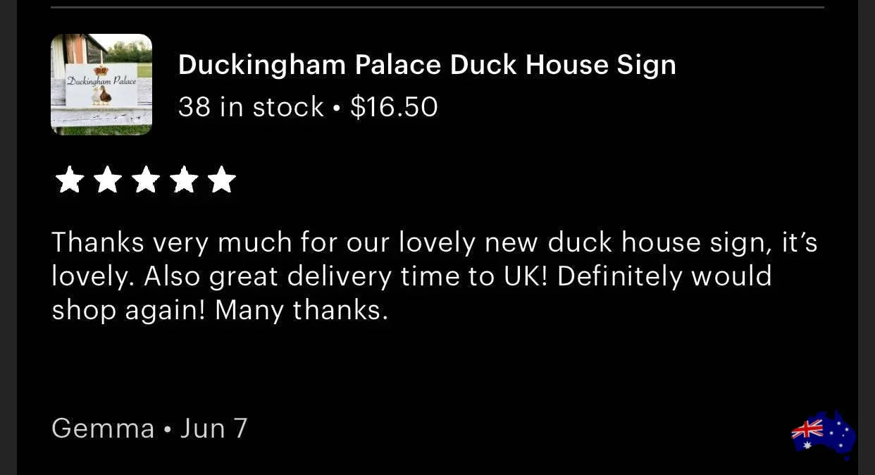 Exceptional customer service, quality and attention to detail, love the last sign we ordered, we will continue to order thanks so much for your wonderful products! Xx