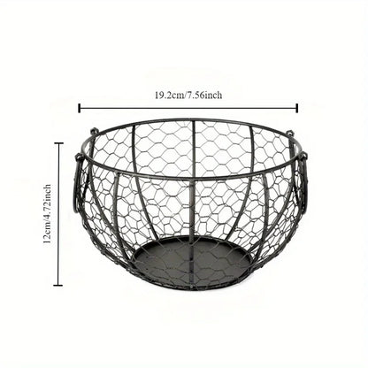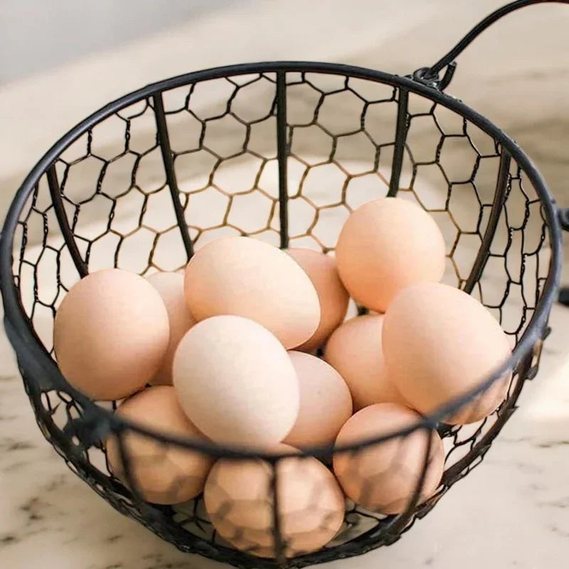 Transform your country kitchen homestead with the rustic appeal of this farmhouse metal chicken egg basket! This charming metal holder is the ideal gift for chicken rooster enthusiasts and adds practicality to any home or use in the garden. Adding a touch of country charm and keep your eggs organized with this cast iron holder. Perfect for collecting, washing, and drying fresh eggs in style.