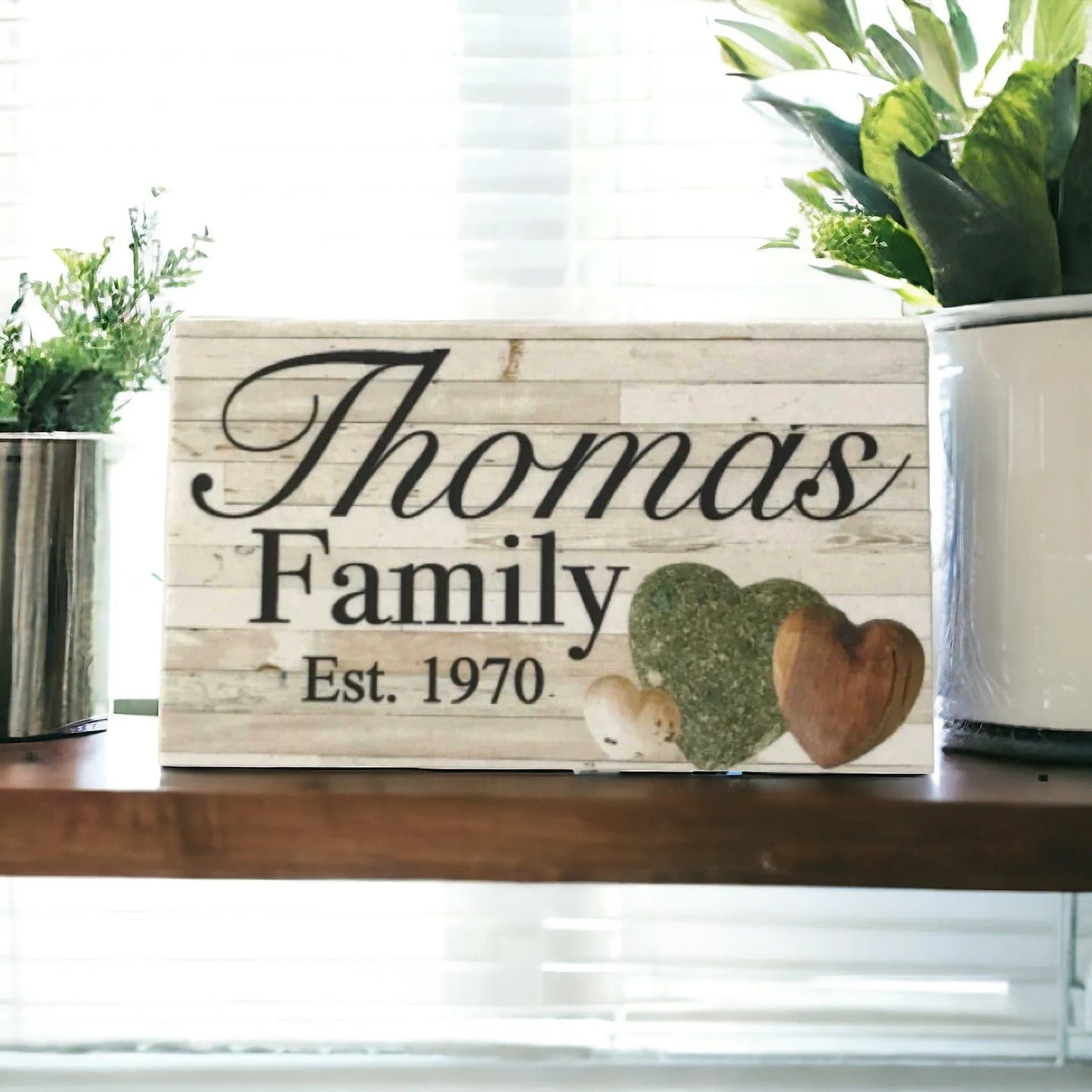 "Create a unique and heartfelt addition to your family's home with our custom personalised shabby chic love sign. This charming piece will bring warmth and love to any room. Get yours today!"
