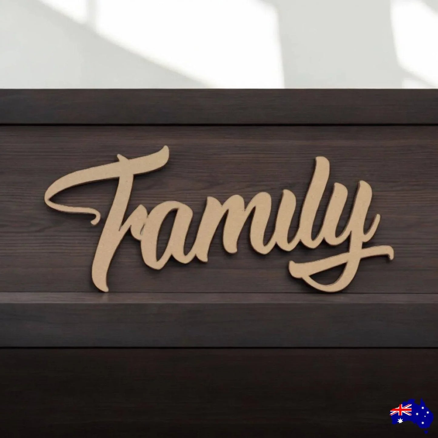 Family Script MDF Shape Word Raw Wooden Wall Art