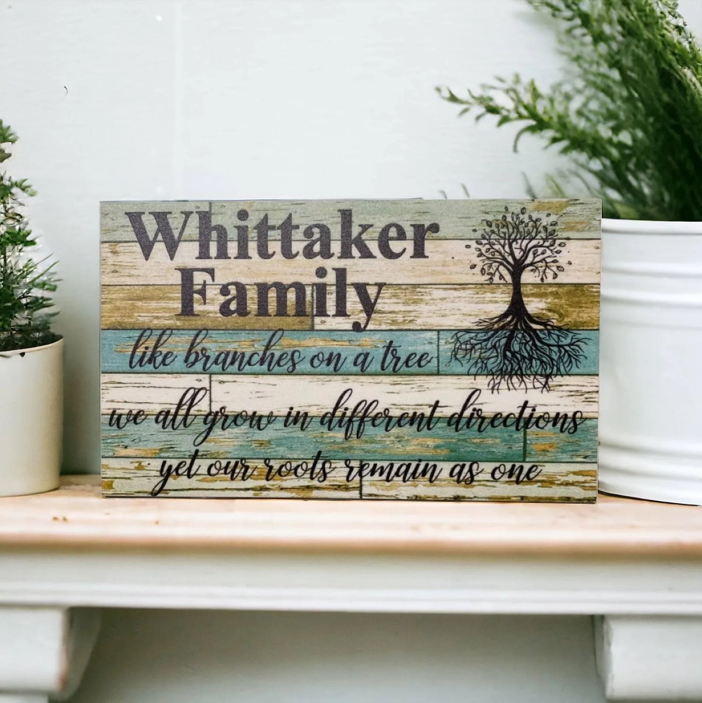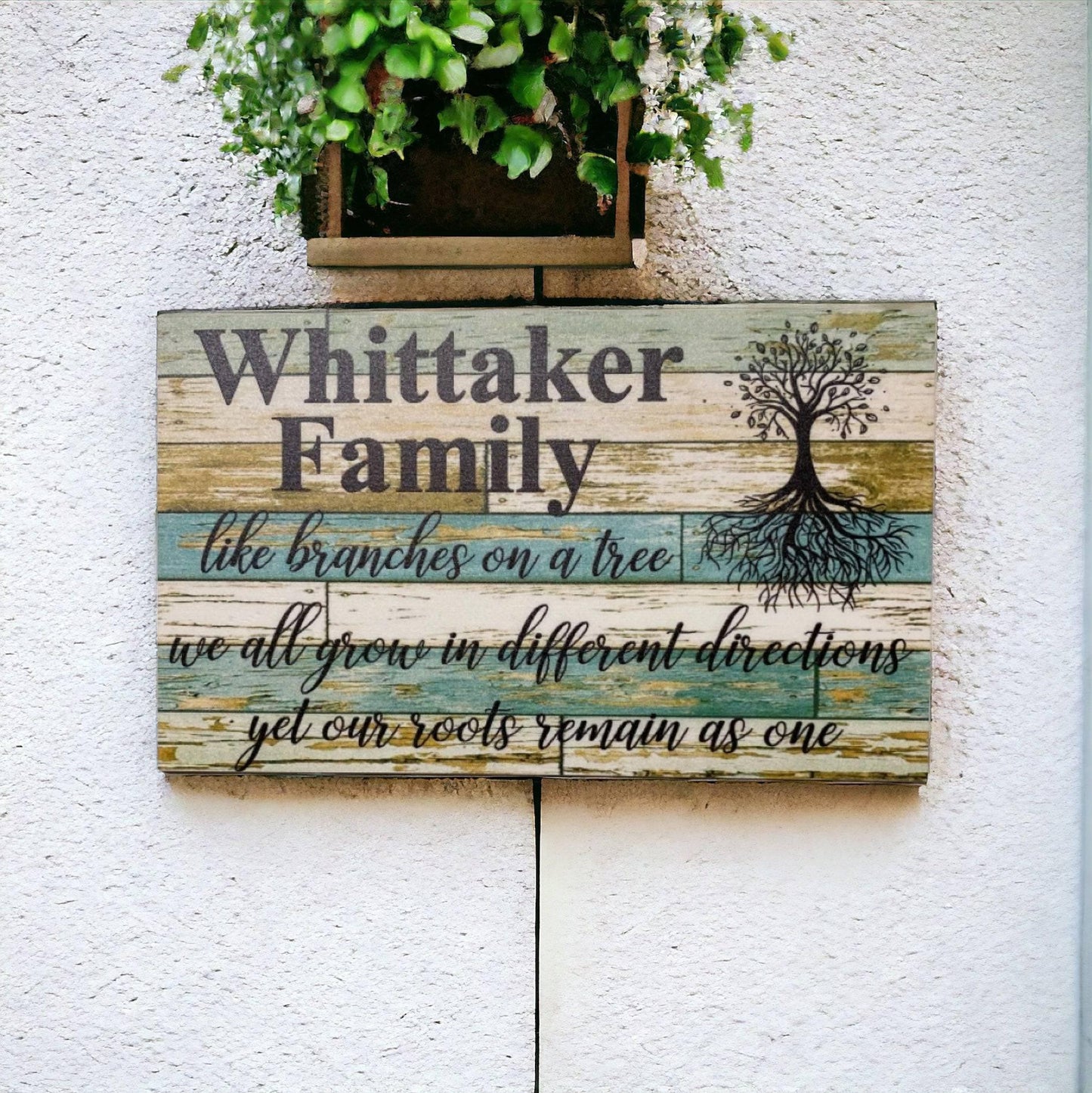 Transform your home into a warm and welcoming space with our Family Tree Custom Personalised Sign. Featuring a powerful quote - "Like branches on a tree, we all grow in different directions yet our roots remain as one" - this beautiful custom sign is the perfect addition to any household. Inspire a sense of togetherness and unity with this unique and heartfelt piece. This breathtaking sign is the perfect present for cherished ones and companions, serving as a constant reminder of the importance of family values.