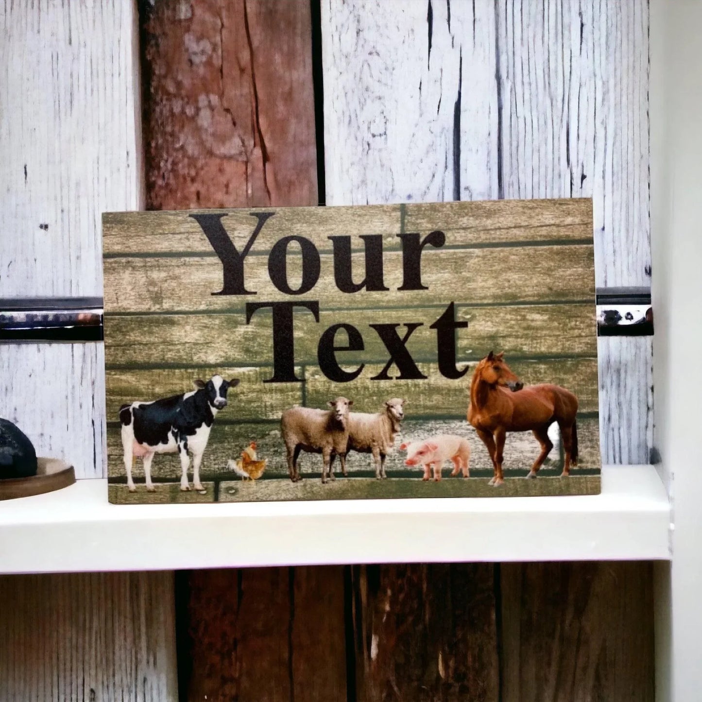 Invite a touch of the countryside to your home or garden with our personalized Farm Animals Custom Farm Country Sign. Bring a rustic charm indoors or outdoors and showcase your love for farm animals with Cow Chicken Sheep Pig and Horse featured. Perfect for a farmhouse-style look, this custom sign makes a beautiful addition to your home décor and is sure to be a conversation starter. Celebrate the beauty of nature and add a personal touch to your space with our Farm Animals Custom Farm Country Sign. Order yours today and bring the countryside to your doorstep!