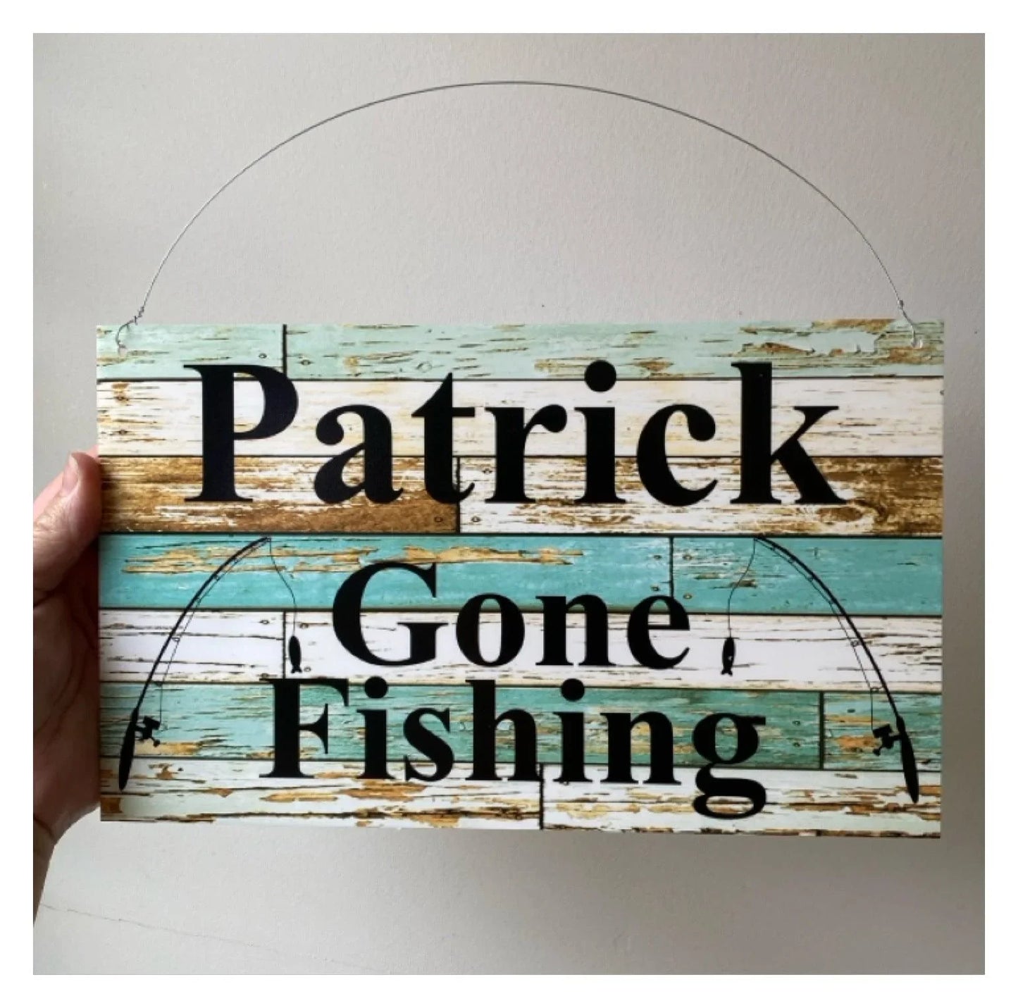 Capture your love for fishing and proudly display it with this stunning customised sign! With its bold rustic design and personalised touch, this sign is sure to add a unique and charming touch to any room or garden. Hang it in your man cave, garage, shed, home office, or anywhere you want to showcase your passion for fishing. It's a must-have for any avid fisherman and makes a perfect gift idea for any fishing enthusiast in your life. Add it to your collection and let it inspire you to take on new adventures and make unforgettable memories on the water.