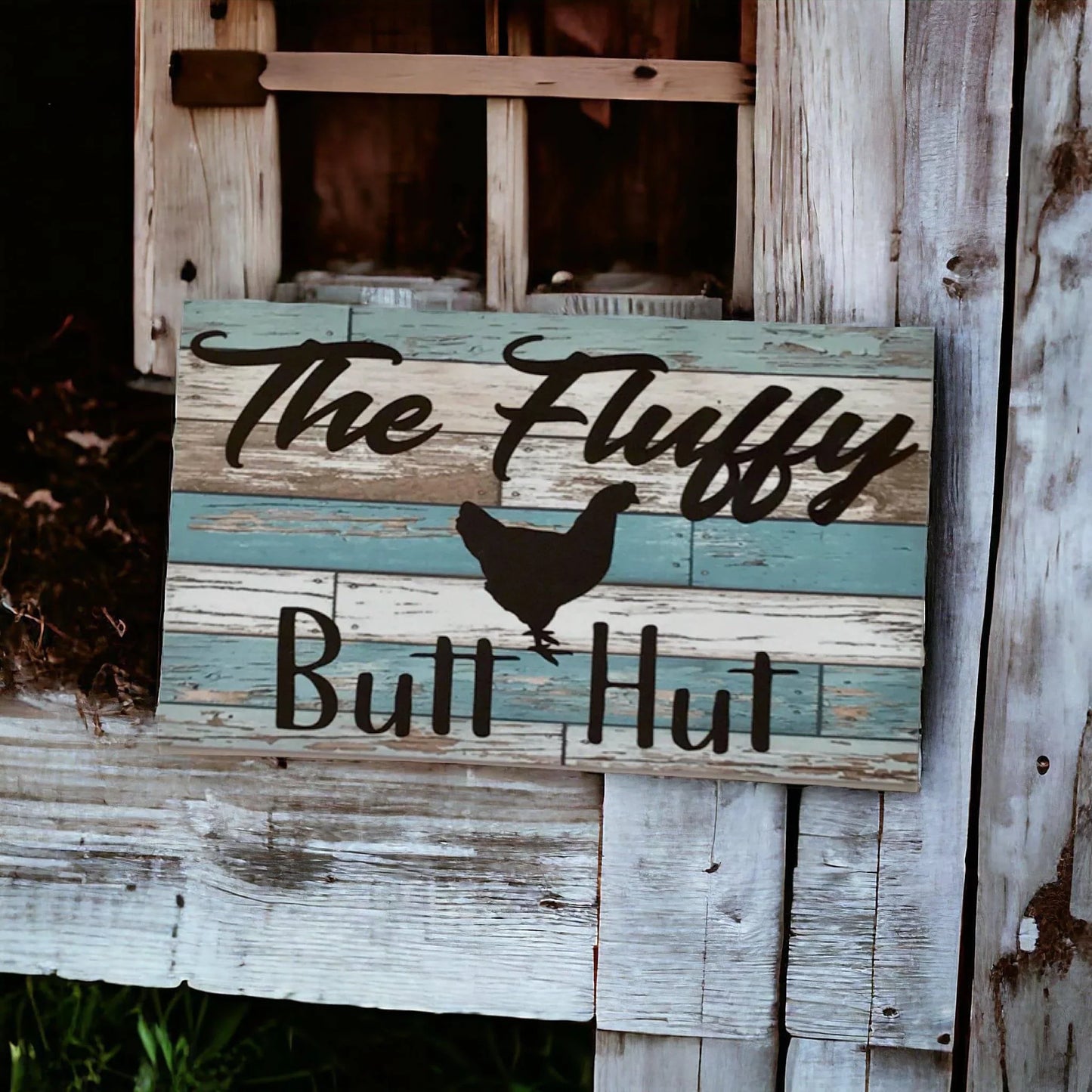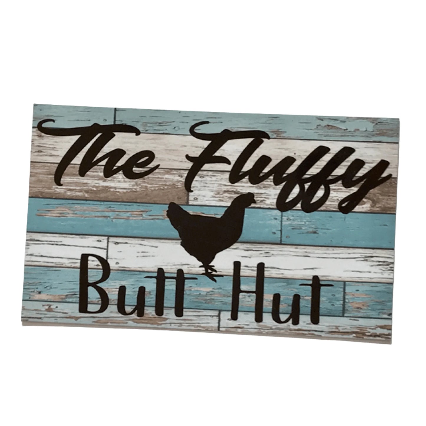 Brighten up your home and show off your love for all things chickens poultry and the country with the charming Fluffy Butt Hut Chicken Rustic Blue Sign! Made with waterproof quality materials and featuring a rustic design, this sign adds a touch of whimsy and character to any space. Hang it in your kitchen, living room, or even your backyard chicken coop for a fun and playful vibe. Guests will love the playful message while you can enjoy the benefits of a durable and stylish decor piece. Upgrade your home with the Fluffy Butt Hut Chicken Rustic Blue Sign today!