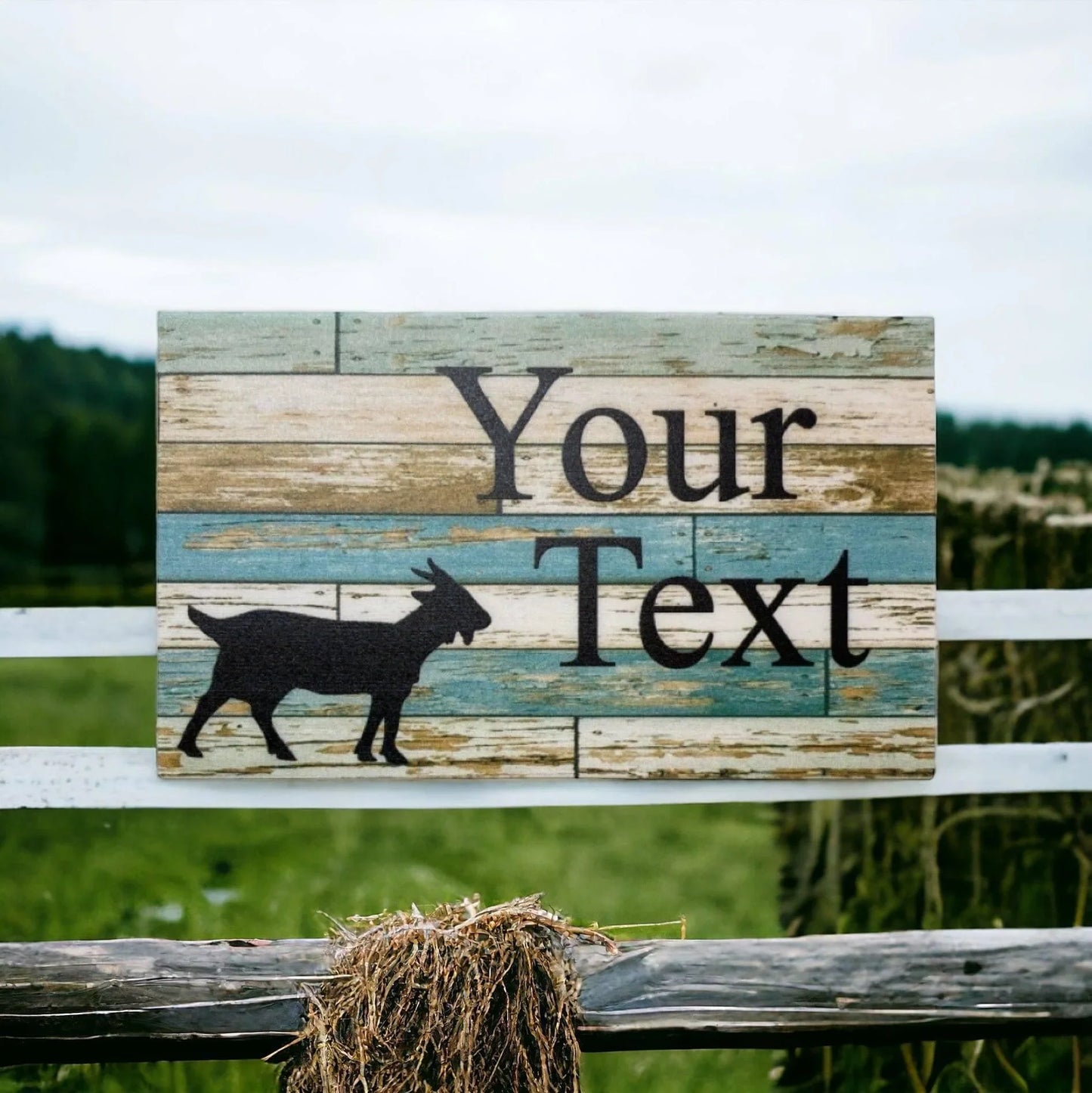 Elevate your country farm with a personal touch by adding our Goat Custom Personalised Country Blue Sign.