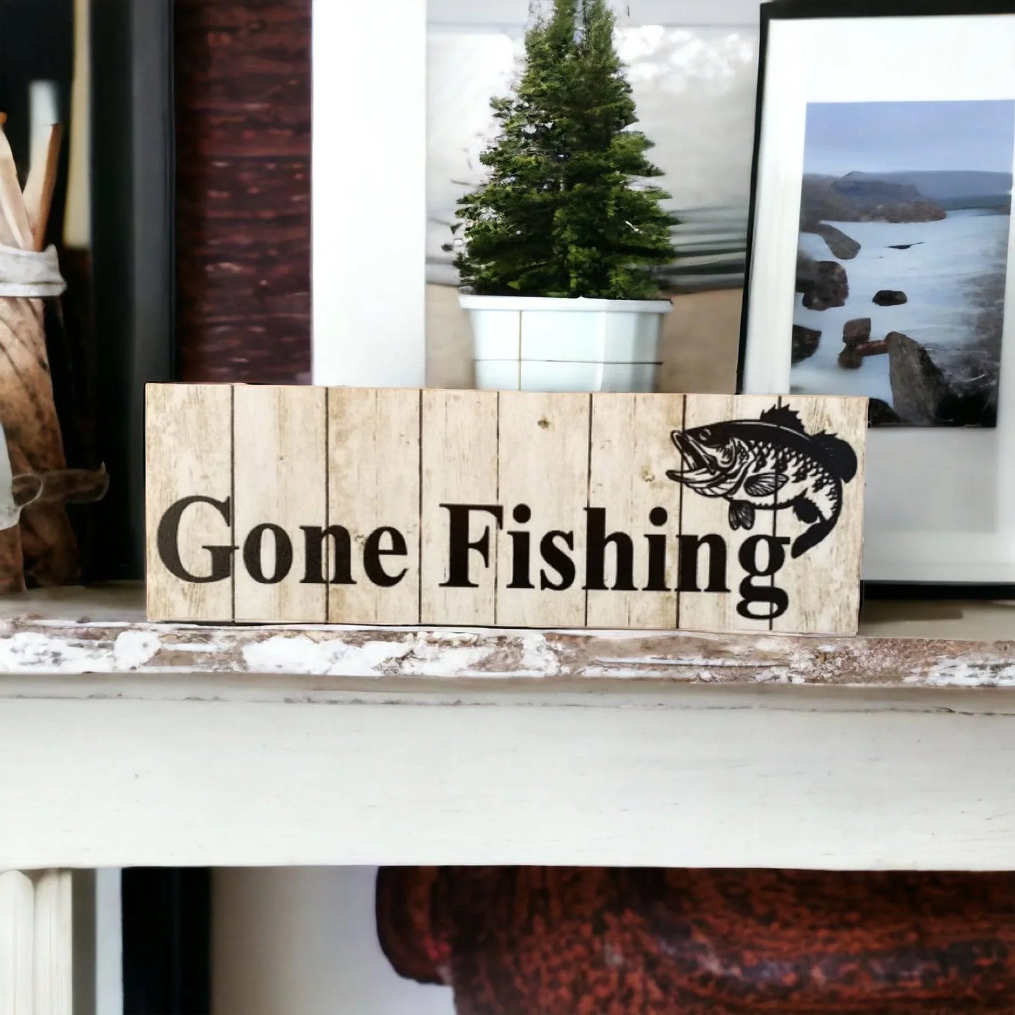 Gone Fishing with Bass Fish Sign