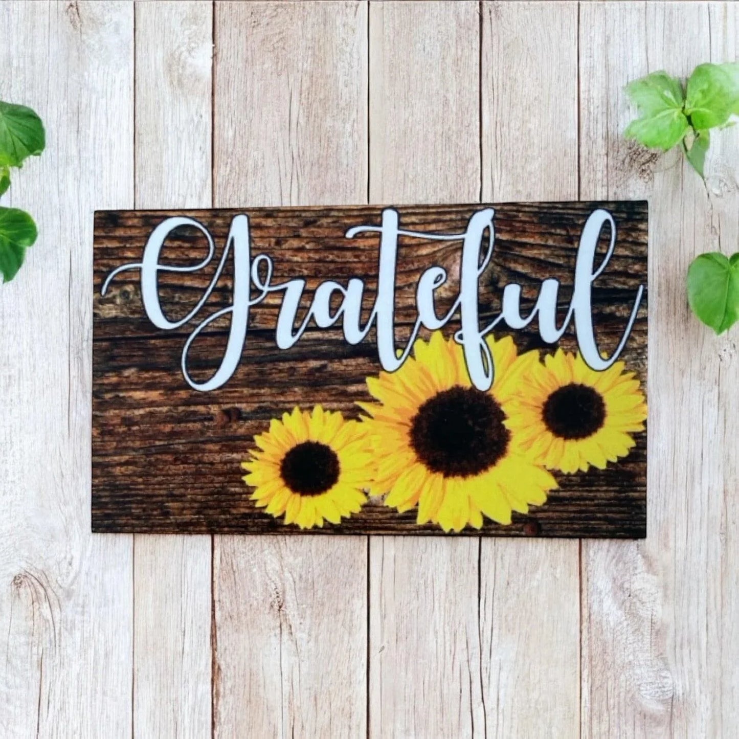 Add a touch of cozy charm to your home decor with our Grateful Sunflower Country Rustic Sign. The warm and inviting rustic wood design will bring a sense of comfort and gratitude into any room. Perfect for adding a touch of personality to your living room, kitchen, or even your front porch. Hang it up and be reminded to appreciate the little things in life.