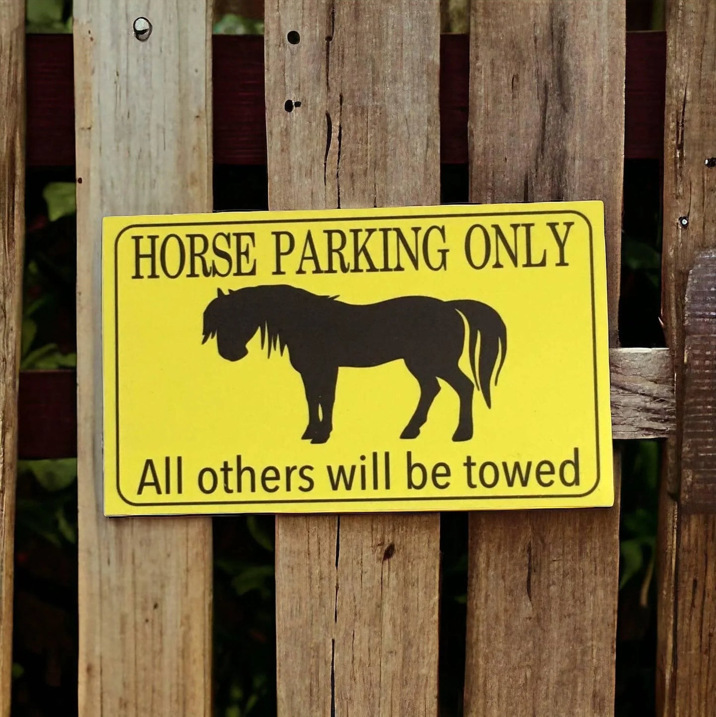 Say neigh to parking violations (sorry, we couldn't resist)! This horse parking only sign will tickle your funny bone and make sure your four-legged friends have a secure spot to call their own. Keep the parking lot clean and your equine companions happy with this cleverly crafted gate sign. Giddy up!
