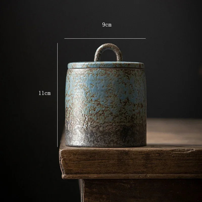 Indulge in the natural unique beauty of ceramic stoneware with these four exquisite jars in a variety of colors - mustard, rustic dark, rust to aqua blue tones. Infused with some wonderful Japanese style, these jars will elevate your Coastal beach house to rustic vintage farmhouse country style kitchen while providing versatile storage for tea, coffee, salt, and more. Could use in the bathroom or anywhere for wonderful stylish storage solution, Measuring 11cm tall and 9cm wide, these jars are the perfect blend of practicality and elegance.