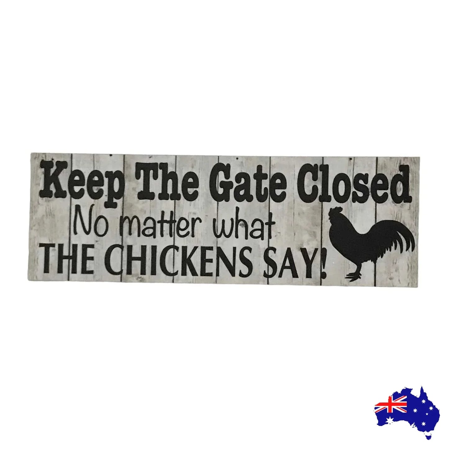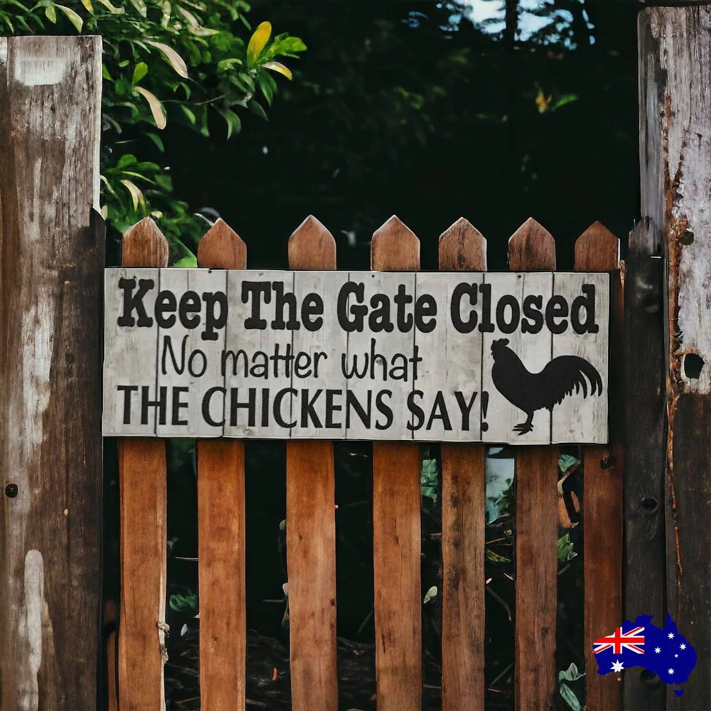 Ensure the gate stays closed regardless of what the chickens might try to tell you with this clear and effective sign.