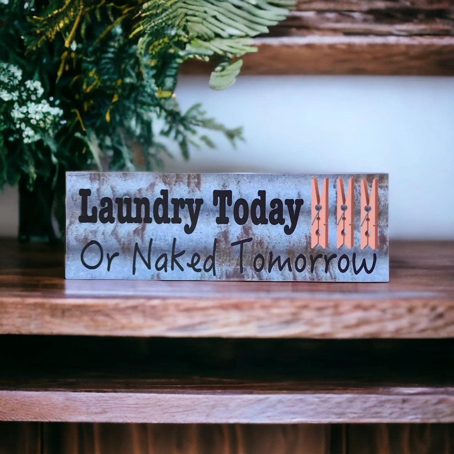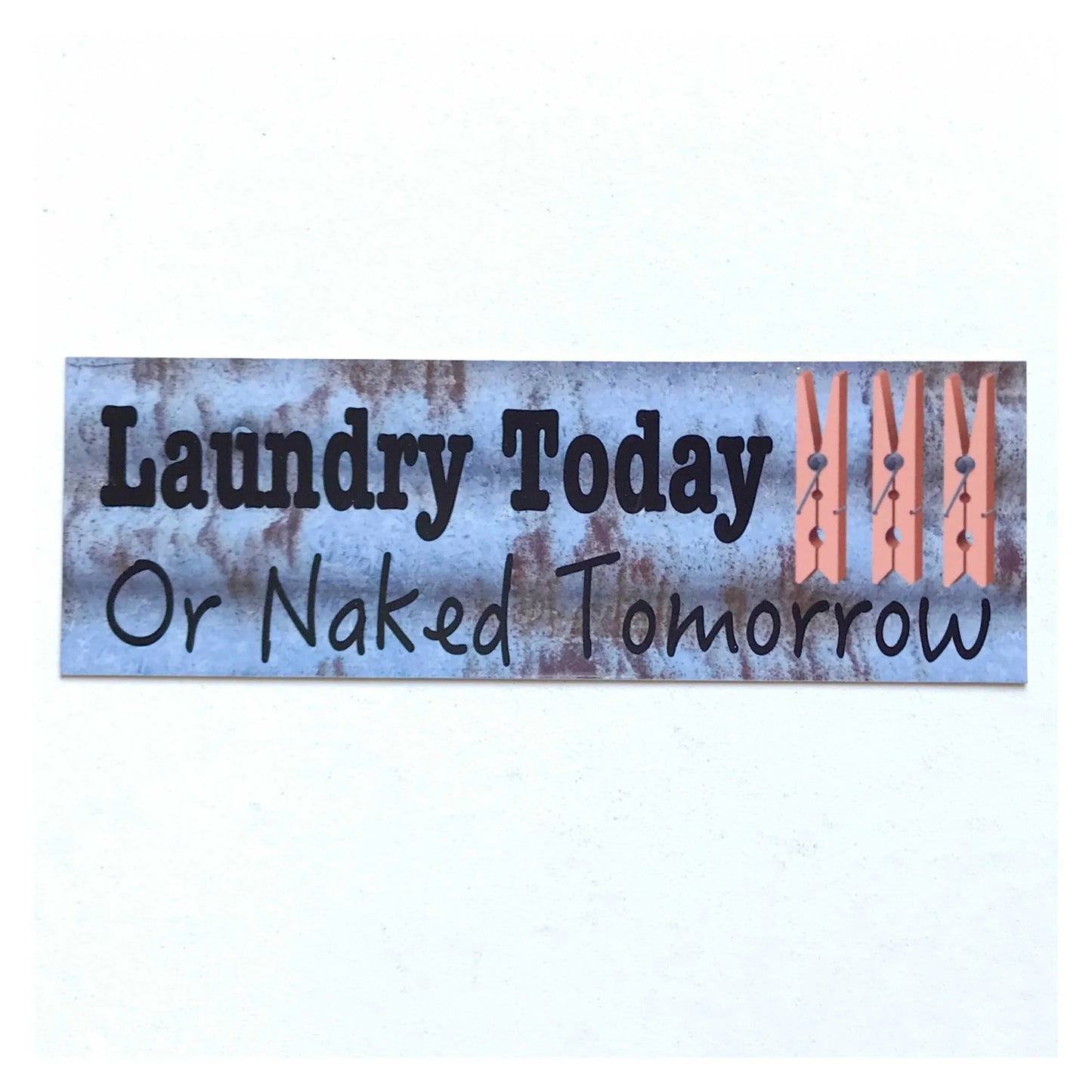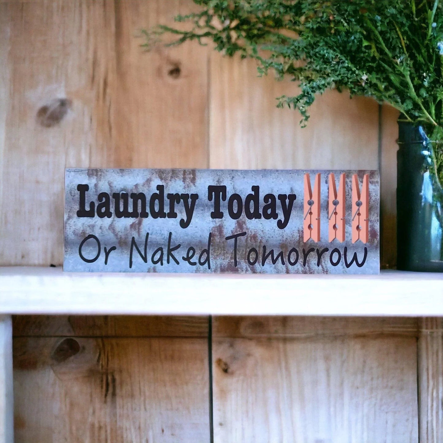 Display this Laundry Today or Naked Tomorrow Rustic Blue Sign in your laundry You'll always have a reminder to stay on top of the laundry– no more playing catch up in the morning! You'll be the best-dressed one in the room. (No kidding!)