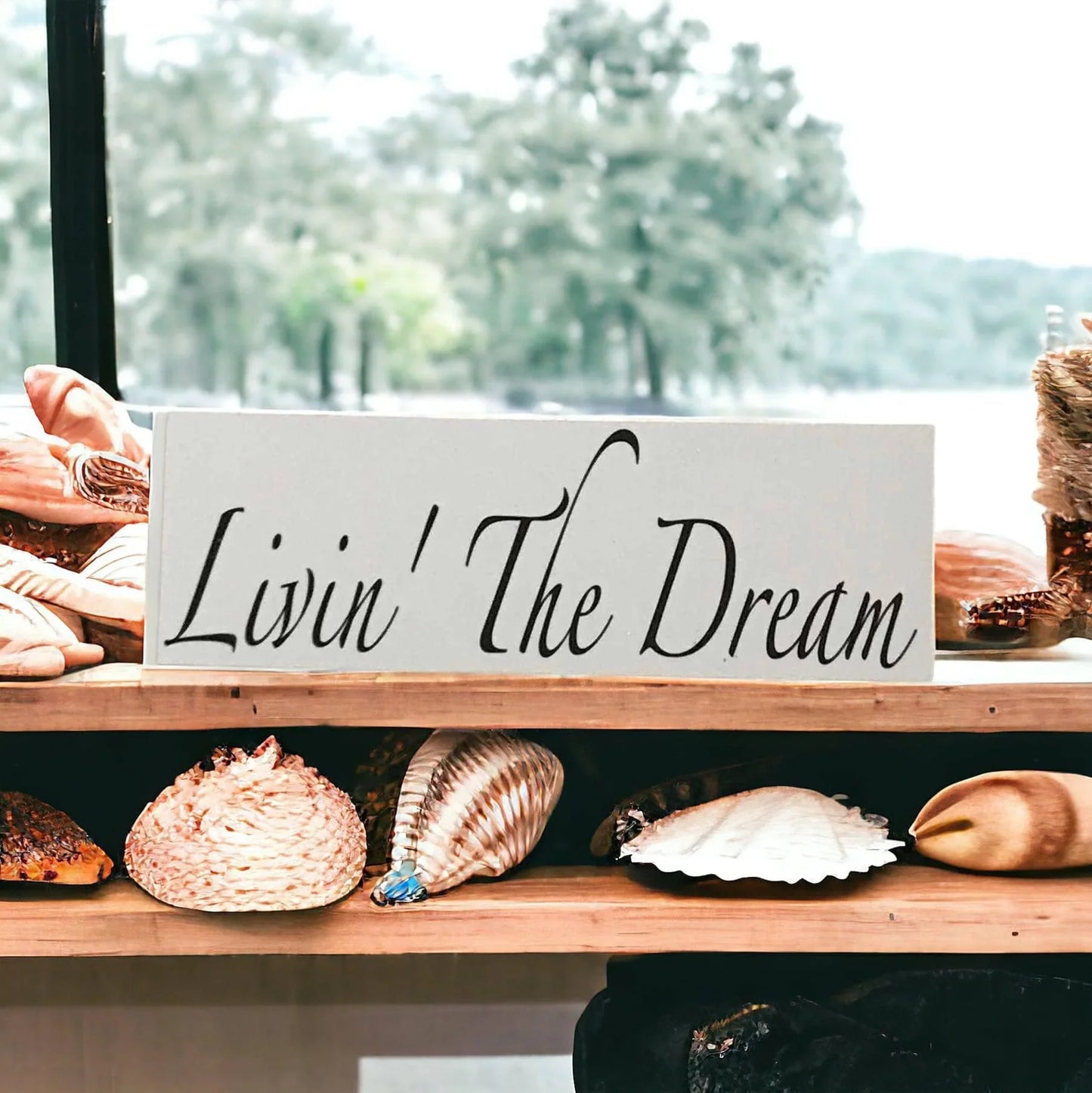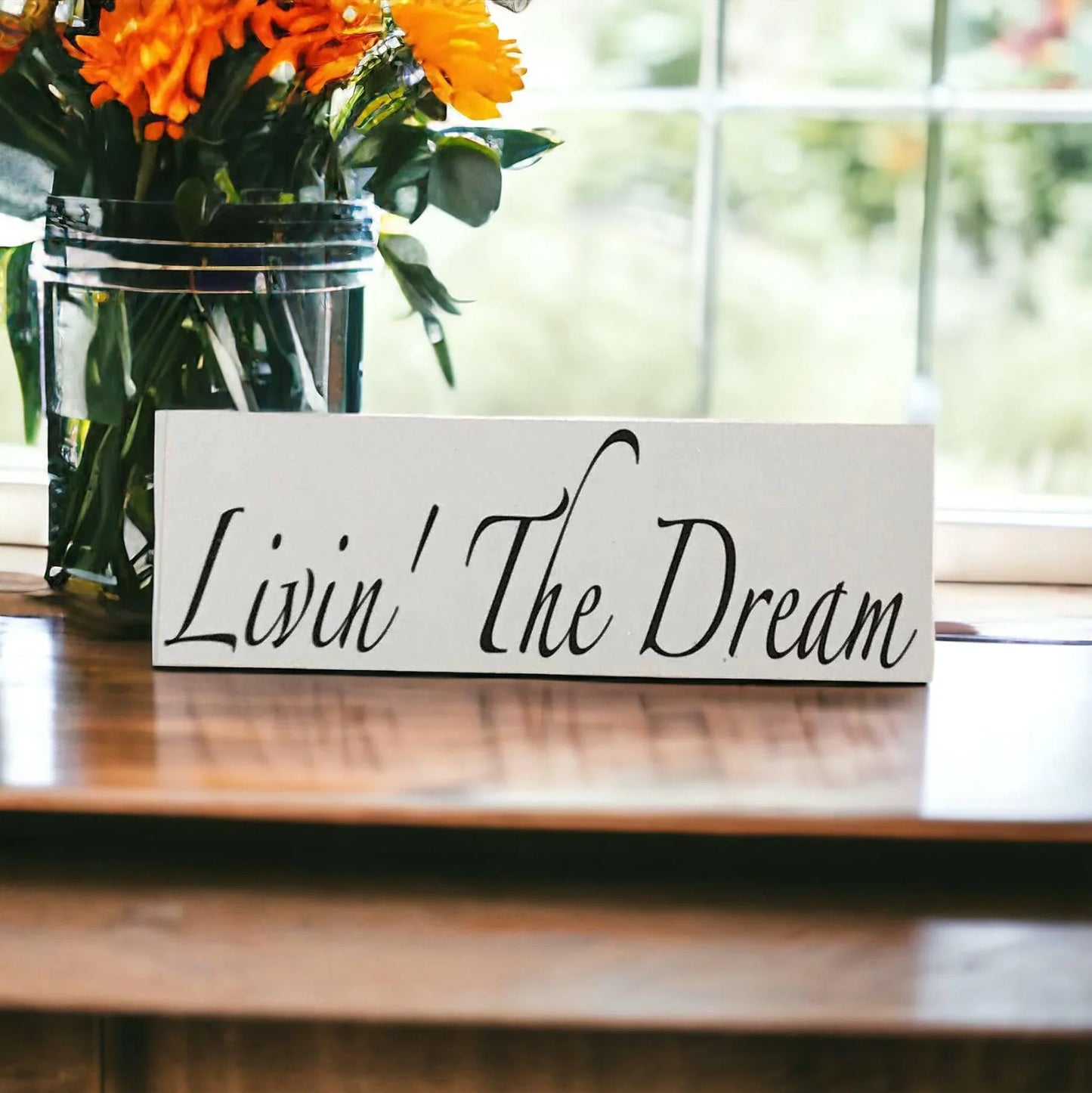Celebrate your best life with the Livin The Dream White Bliss Sign, a stylish reminder to embrace joy and positivity every day. Perfect for displaying indoors or outdoors!