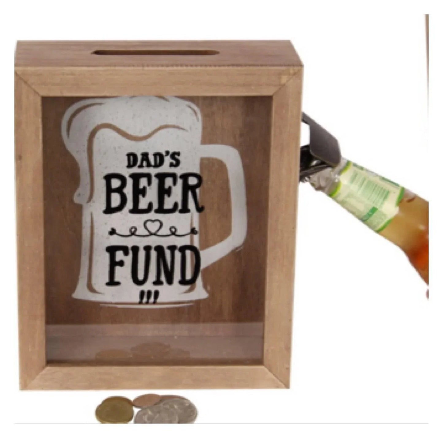 Money Box Dads Beer Fund Rustic with Bottle Opener