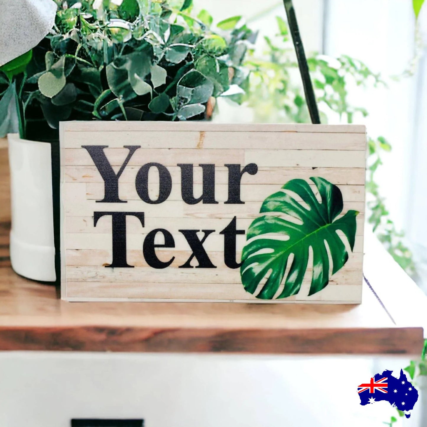 Elevate your space with our Monstera Leaf Custom Personalised Sign! Put your unique wording on this unique sign to add a touch of charm and personality to any room.