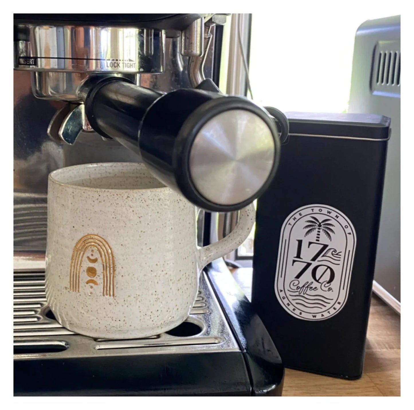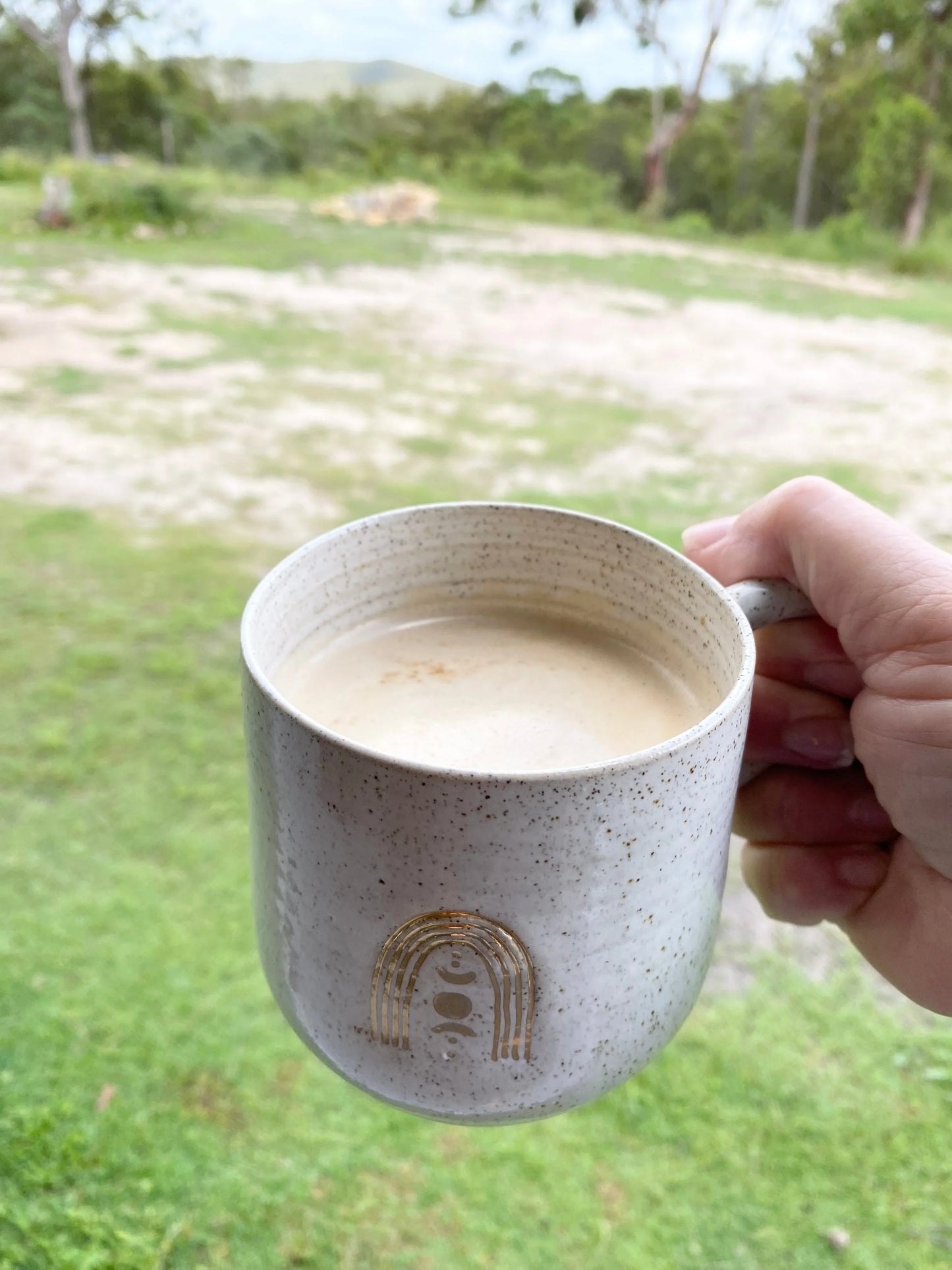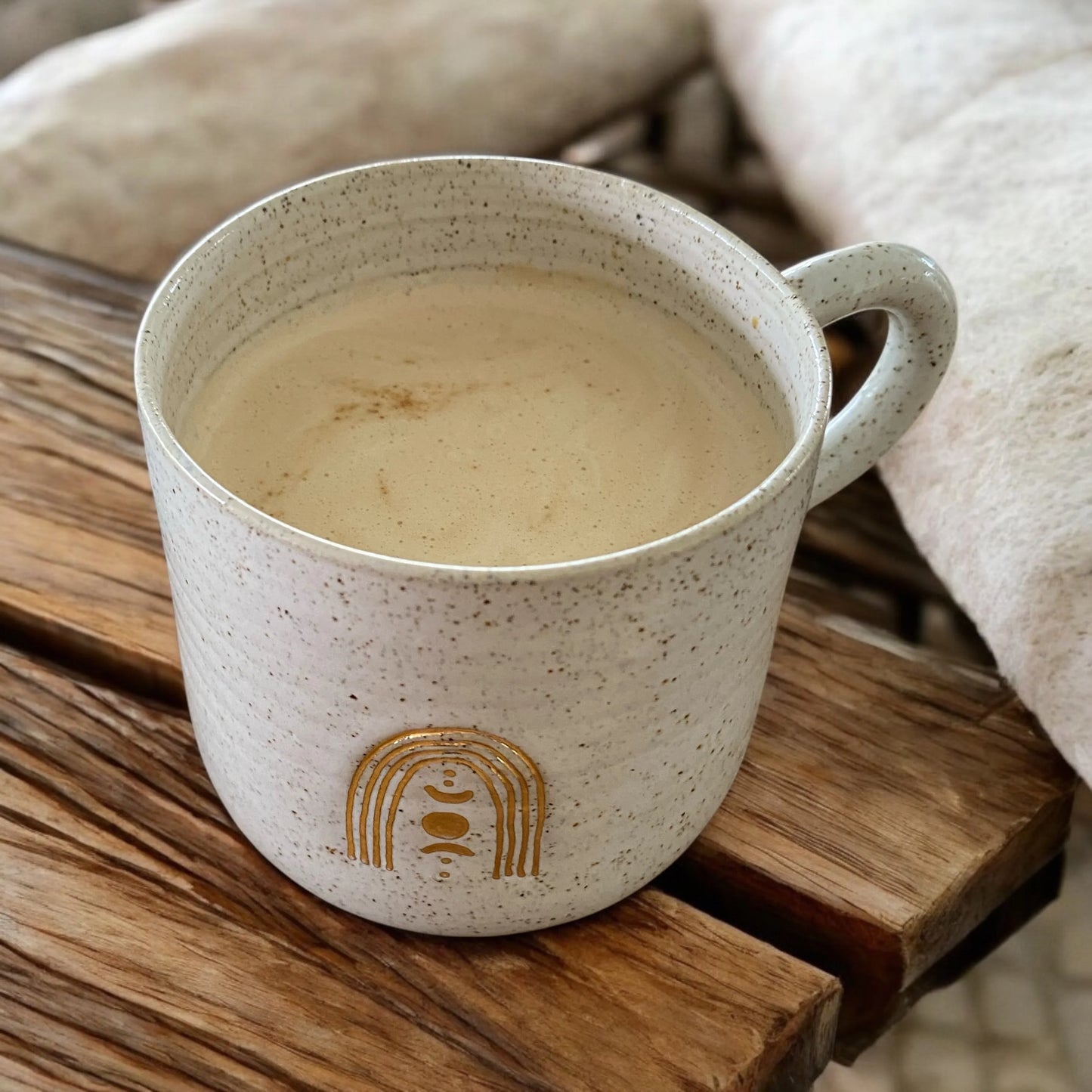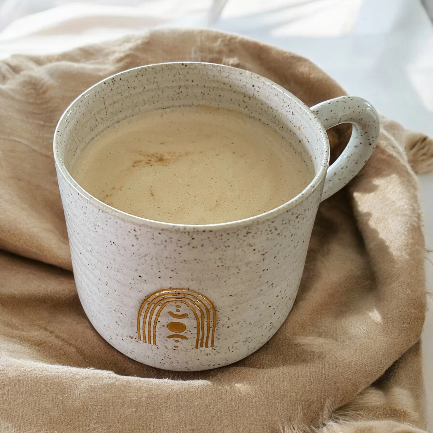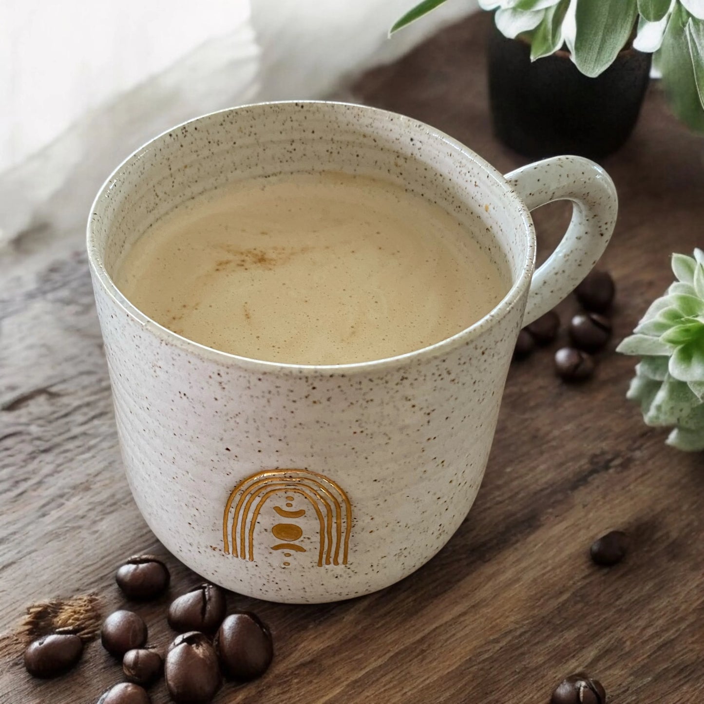 Indulge in your daily coffee tea cacao or any other favorite drink with our Aussie made, handcrafted clay pottery mug cup by Johanna from Wolf and Clay. Created from natural, sustainable materials, this exquisite and unique cup is perfect for home style, this mug also makes for a thoughtful gift for rainbow and Moon Phase lovers.  Holds approximately up to 375ml of liquid.