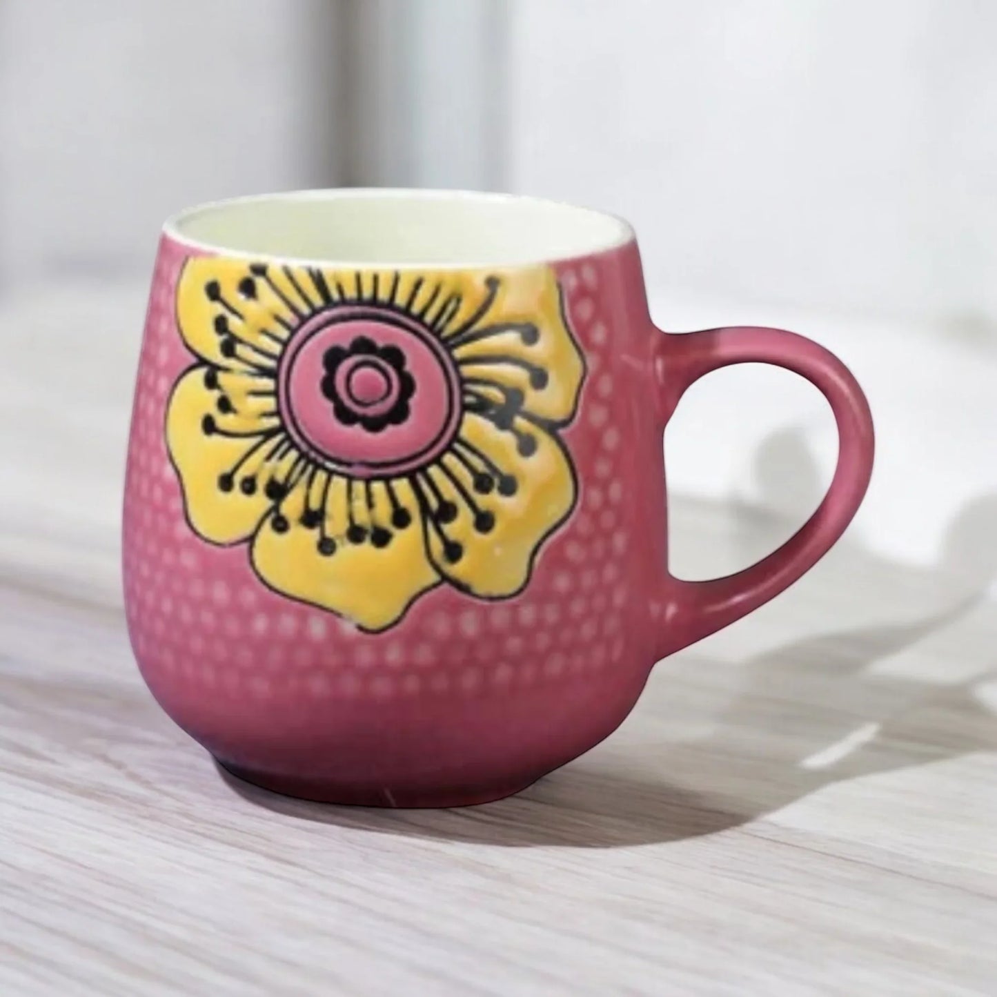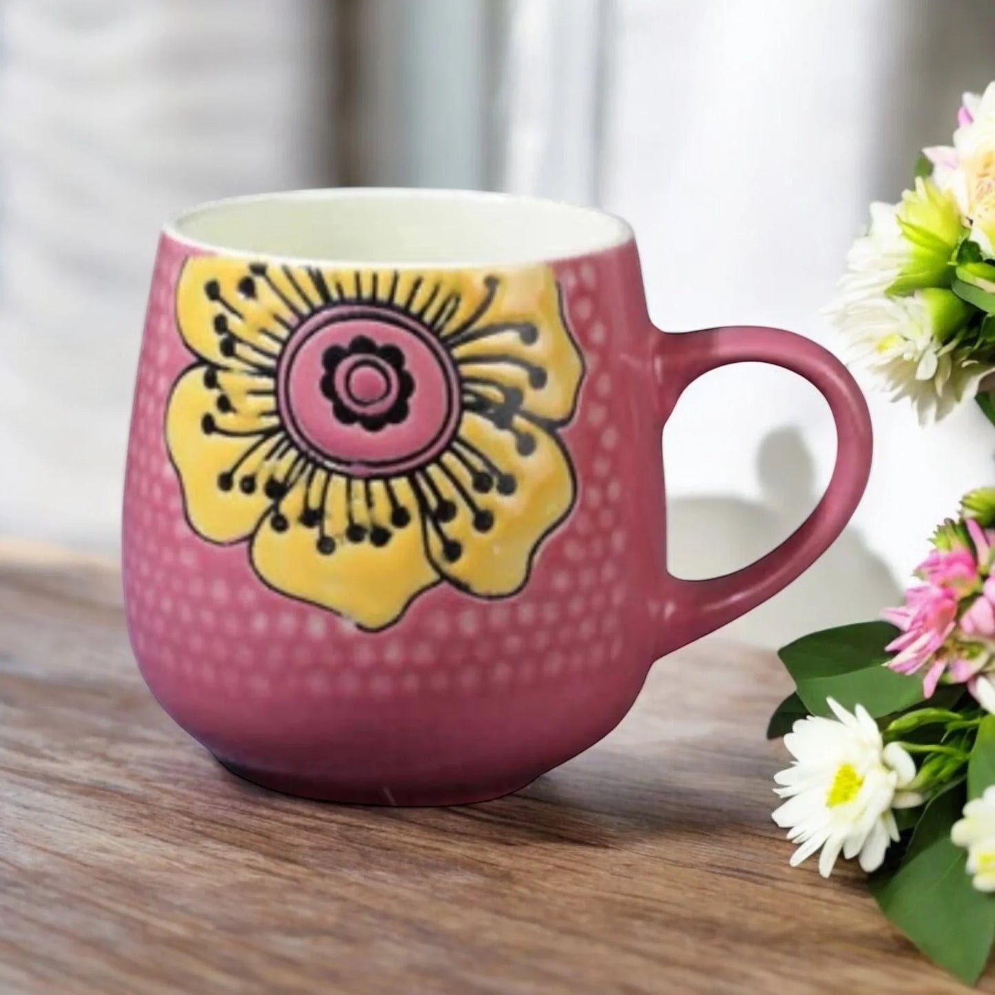 Transform your daily routines with the Mug Cup Tea Coffee Pink Flower. Drink up to 480ml of your favorite beverage like water, tea, cocoa or coffee just to name a few suggestions! With its wonderful style, this mug is perfect for everyday use with a wonderful bohemian vibe. Give your loved ones a gift they'll remember forever, especially for those who appreciate a good cup of tea or coffee. Each cup is individually made with ceramic, making it one-of-a-kind and full of unique character. Approx Size is 8cm x 10cm