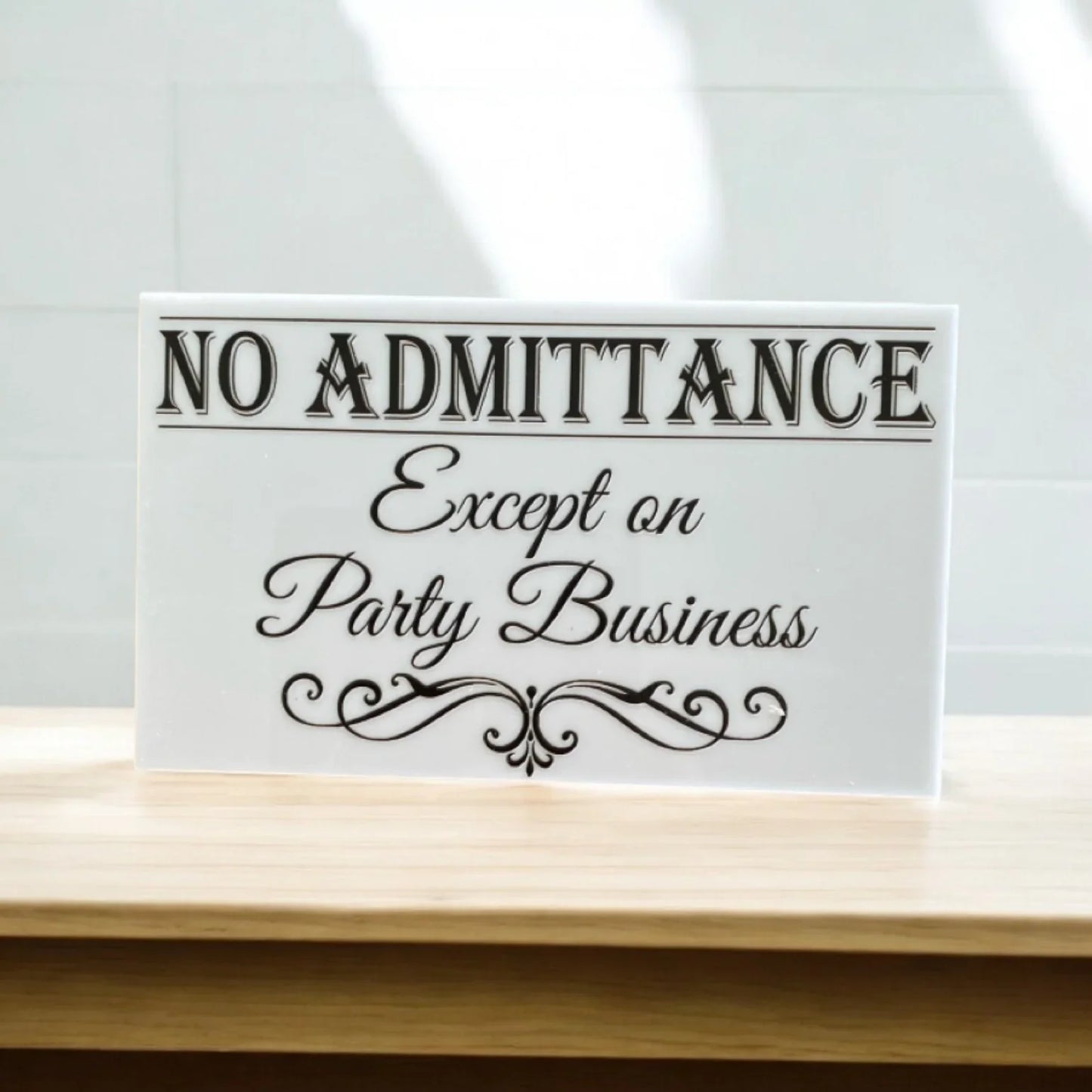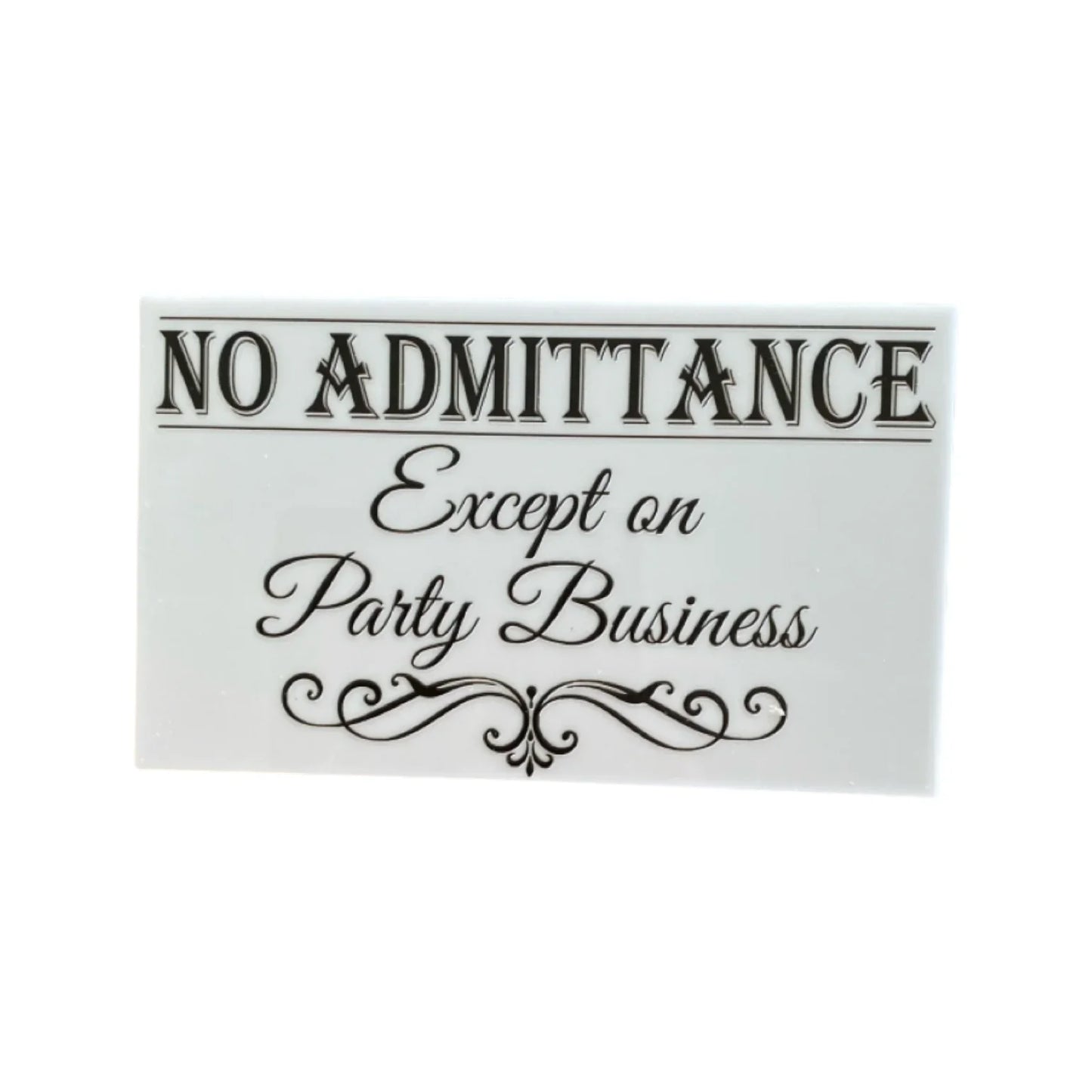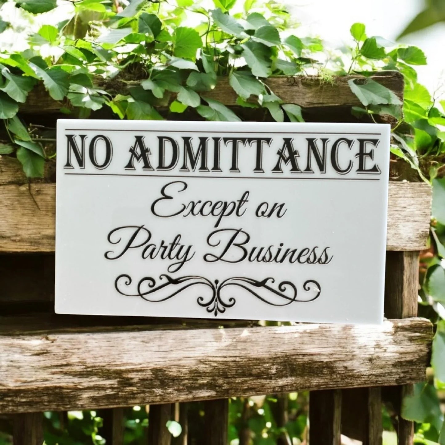 Be the life of the party with our "No Admittance Except On Party Business" sign! Keep unwanted guests out while adding a whimsical touch to your décor. This sign is the perfect conversation starter for any gathering. Get ready to party like never before! (Just make sure to invite the right people in first!)