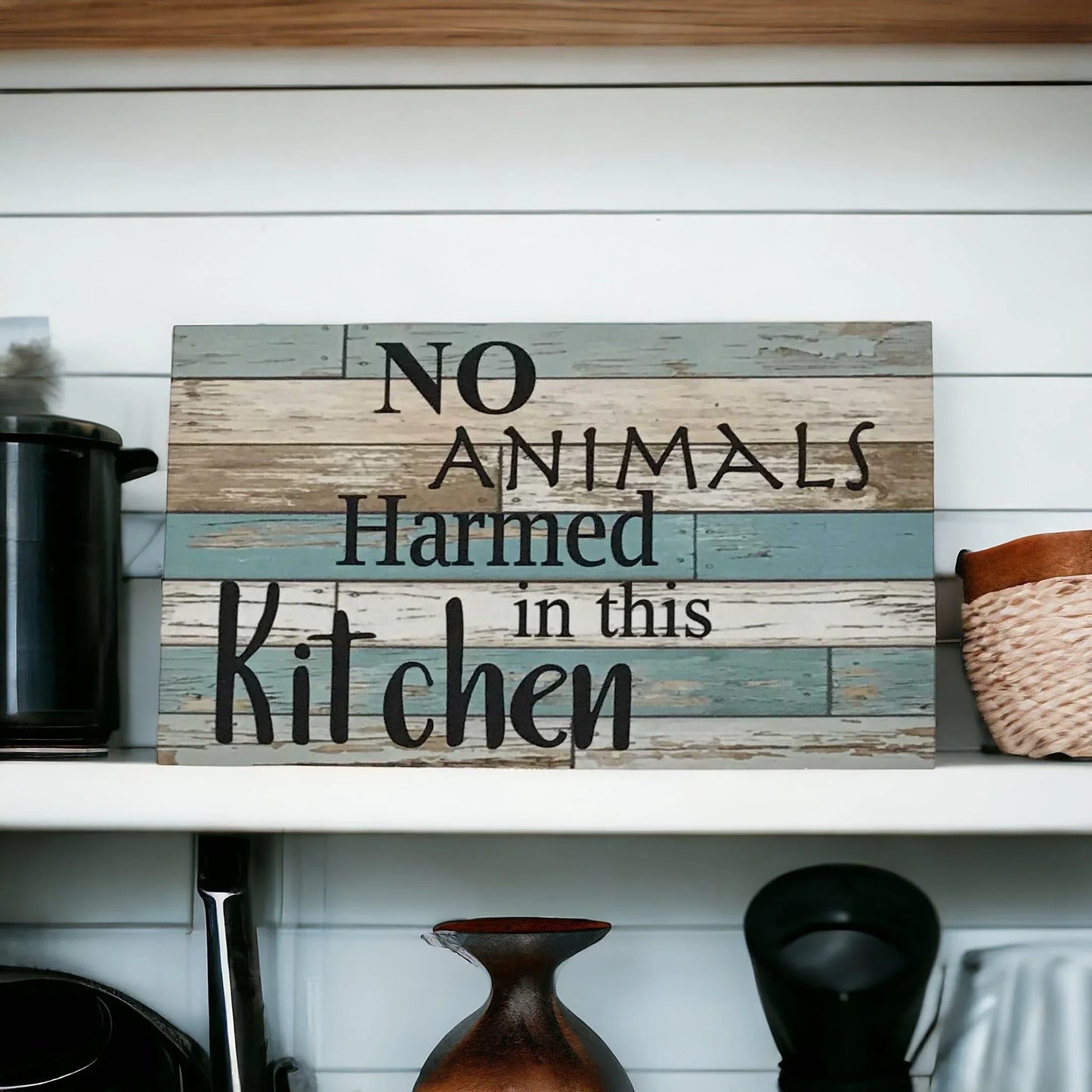 No Animals Harmed In This Kitchen Vegan Vegetarian Blue Sign
