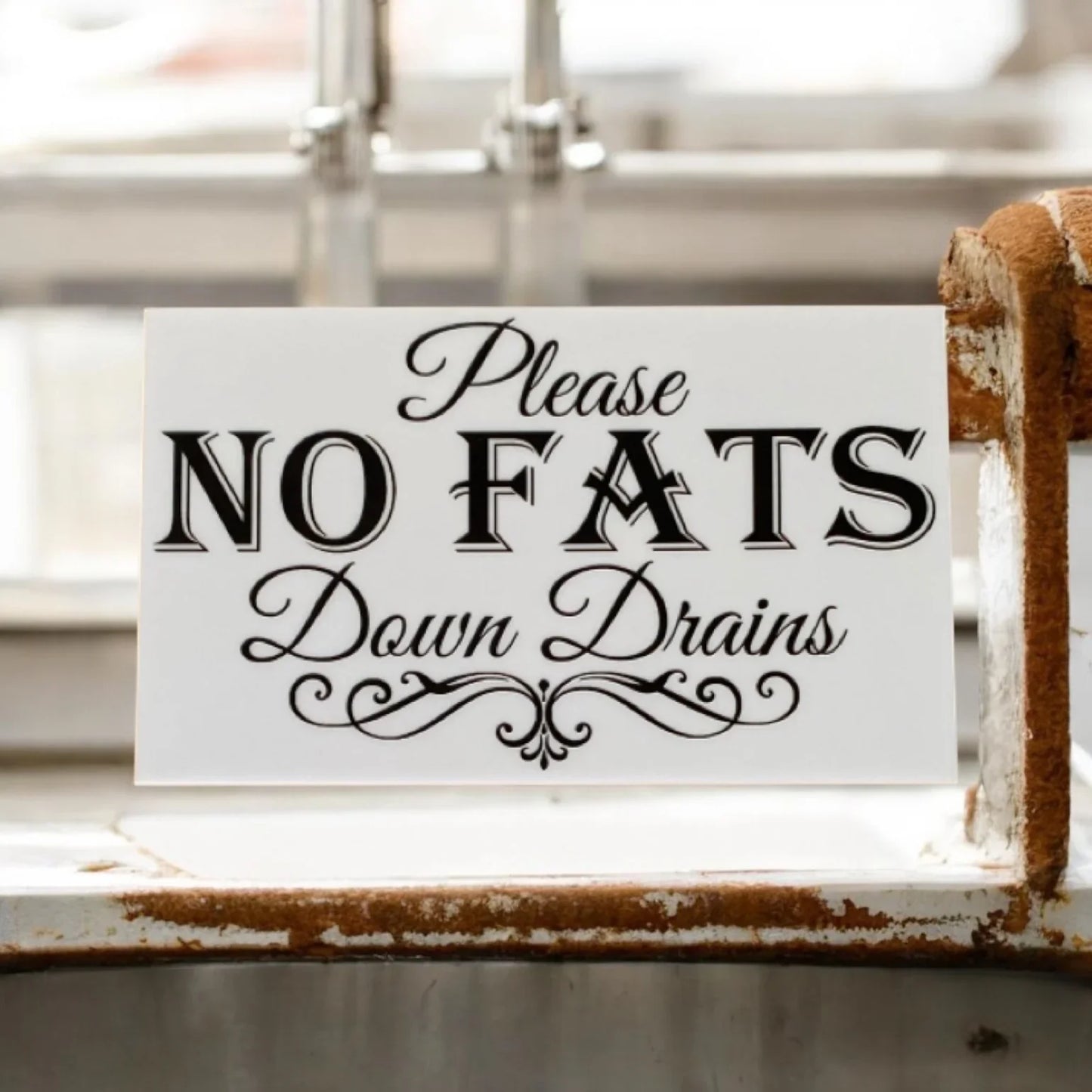 Keep your plumbing costs low and your kitchen functioning smoothly with our No Fats Down Drains Kitchen Sign! Say farewell to clogged pipes and hello to an efficient and hygienic kitchen. Ideal for guest houses, hotels, motels, campgrounds, and commercial establishments like cafes and restaurants.