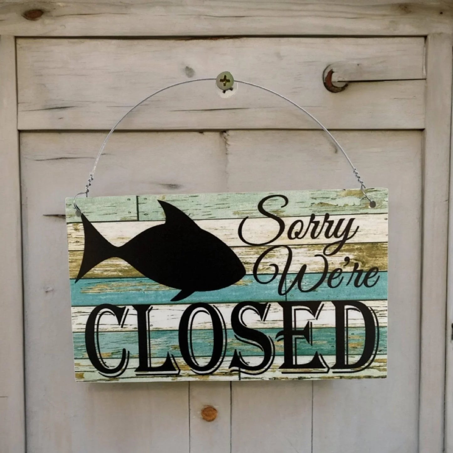Open Closed Fish Chip Tackle Shop Hanging Sign