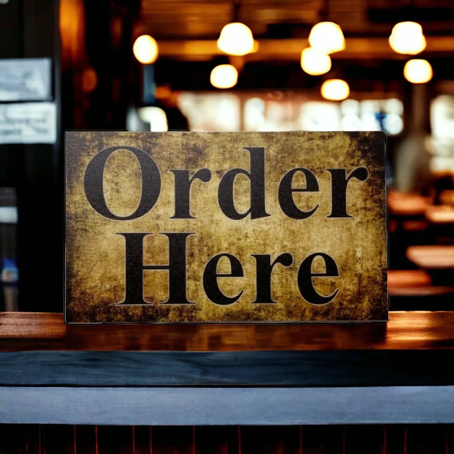 Make a bold statement with this Vintage Antique Style sign that will grab the attention of hungry customers and guide them straight to your order counter. Increase foot traffic and boost sales with our eye-catching signage that boldly displays Order Here. Perfect for any restaurant or cafe!