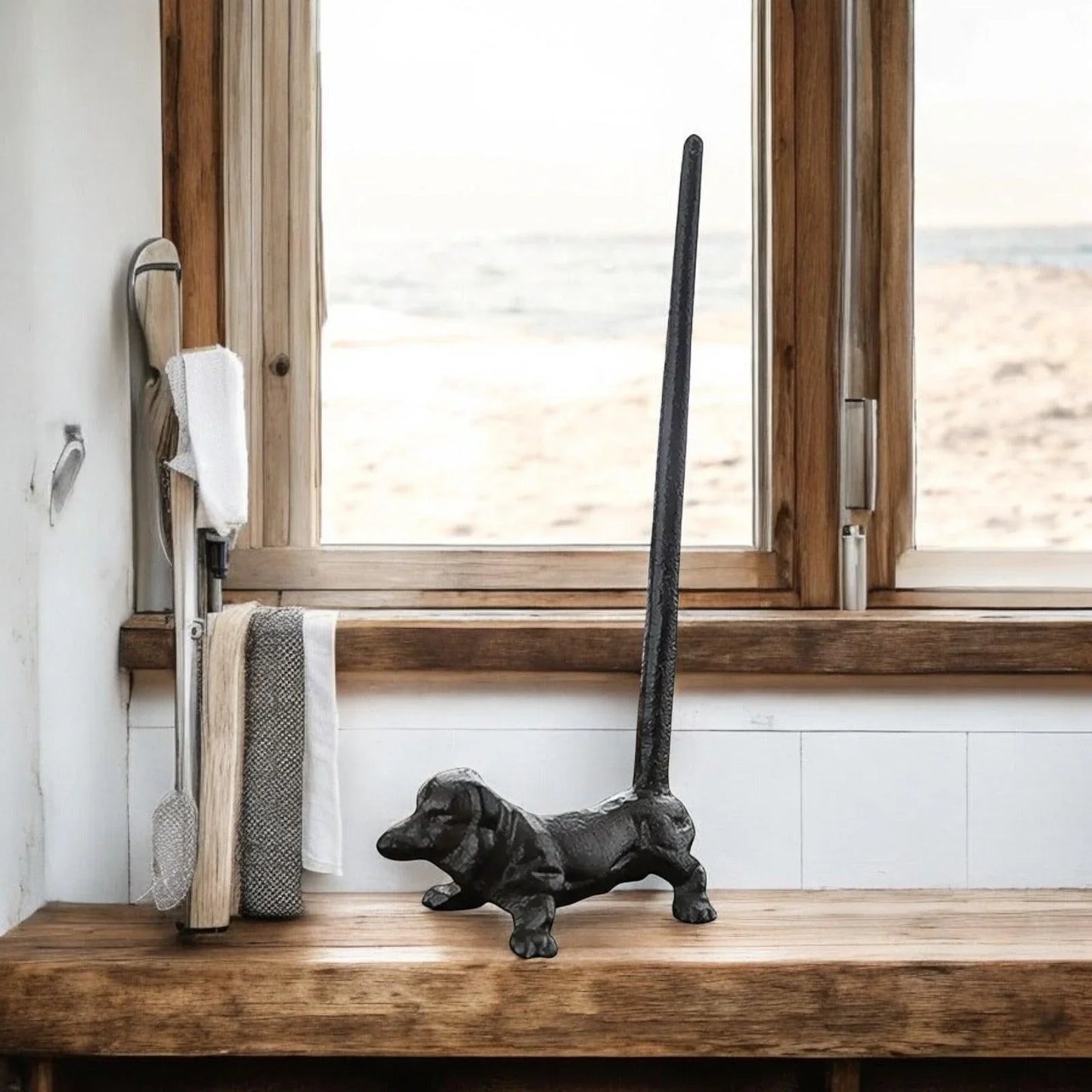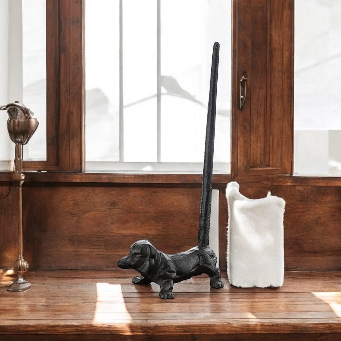 Introducing our adorable Paper Towel Holder - a delightful Cast Iron Dachshund designed to hold your rolls with charm and style. Standing at 30.5cm tall and 14cm wide, this cute canine is sure to bring a playful touch to your kitchen.