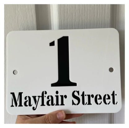 Our Aussie small family Business made Personalised Street Number Address Letter Box White Personalised House Sign is ideal for attaching to letter boxes, walls, fences, or even doors! It displays your address, house number, or any custom text you desire, making it easier for visitors to find your property or business. Comes with standoffs and screws ready for your to hang on your wall.