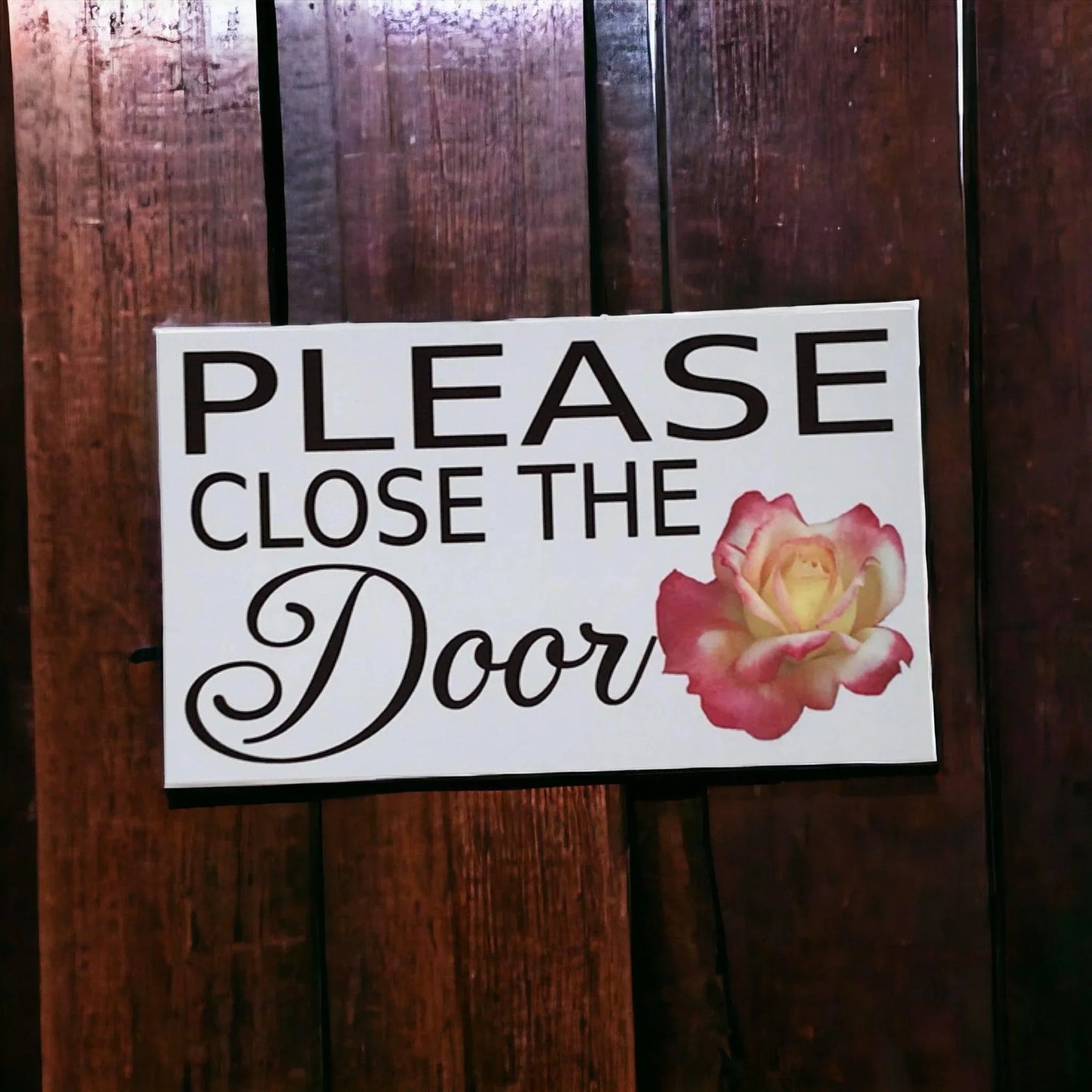 This beautiful sign features a rose design with the phrase "Please Close The Door" in elegant script. It's the perfect way to add a touch of sophistication to any room while conveying an important message.
