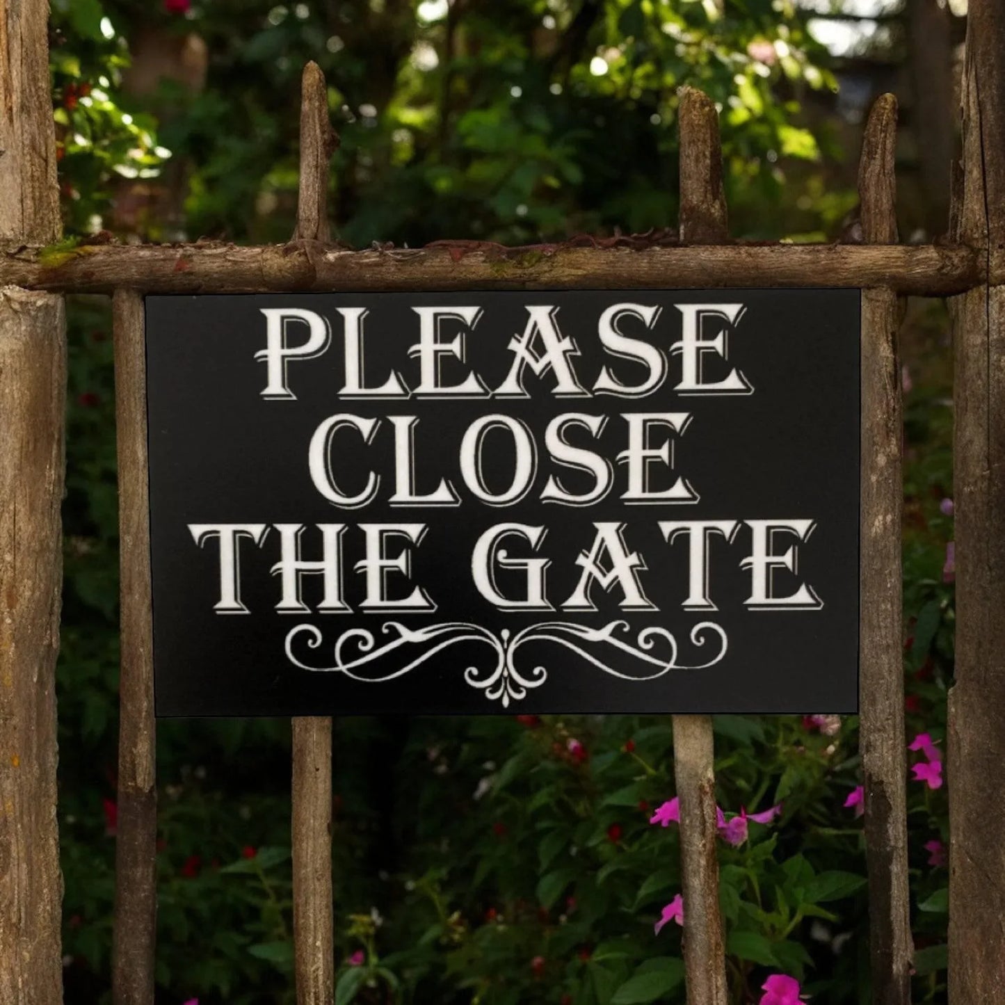 Secure your property with our Please Close The Gate Vintage Sign. Keep your loved ones and belongings safe with this classic Black and White sign.