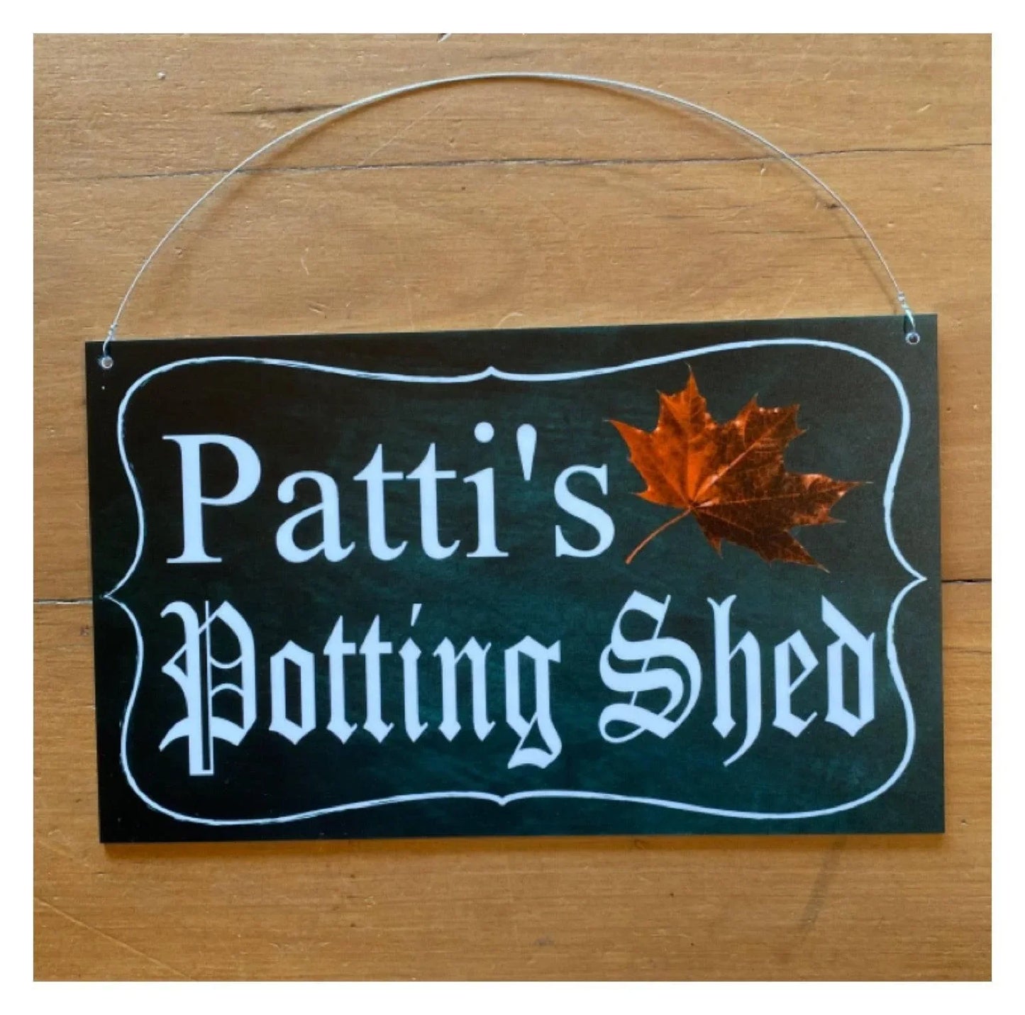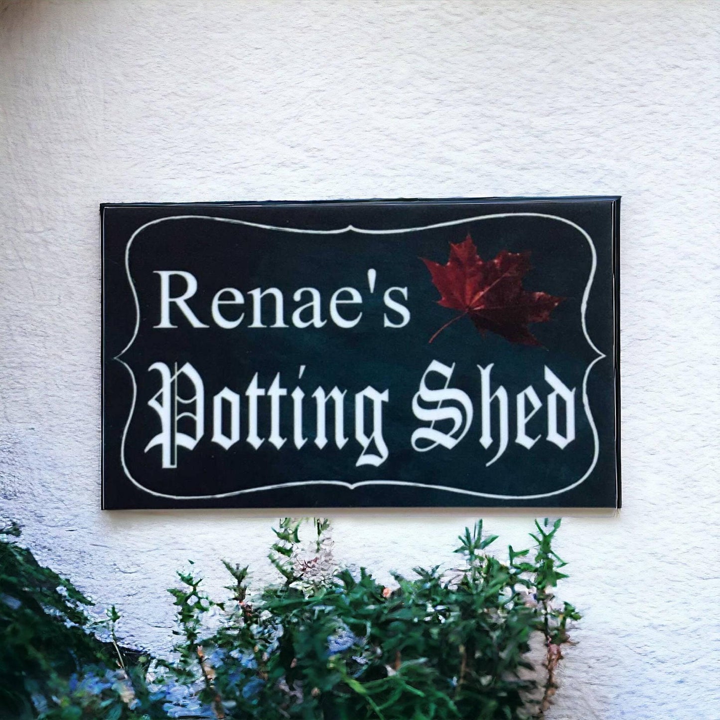 Personalise your garden with the Potting Shed Custom Name Garden Sign, featuring a male leaf design.