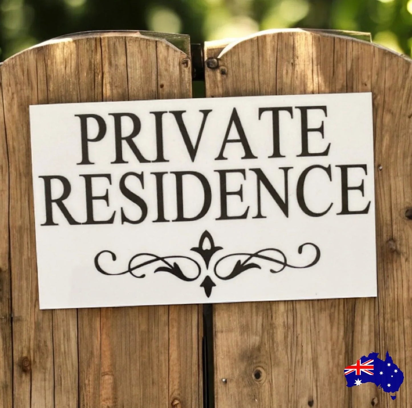 Welcome to your private oasis! With our Aussie Made Private Residence Fence Gate Wall Vintage Sign, you can keep unwanted visitors out while adding a charming and functional touch to your outdoor space. Thank you for choosing our small Aussie Business to protect your private sanctuary.