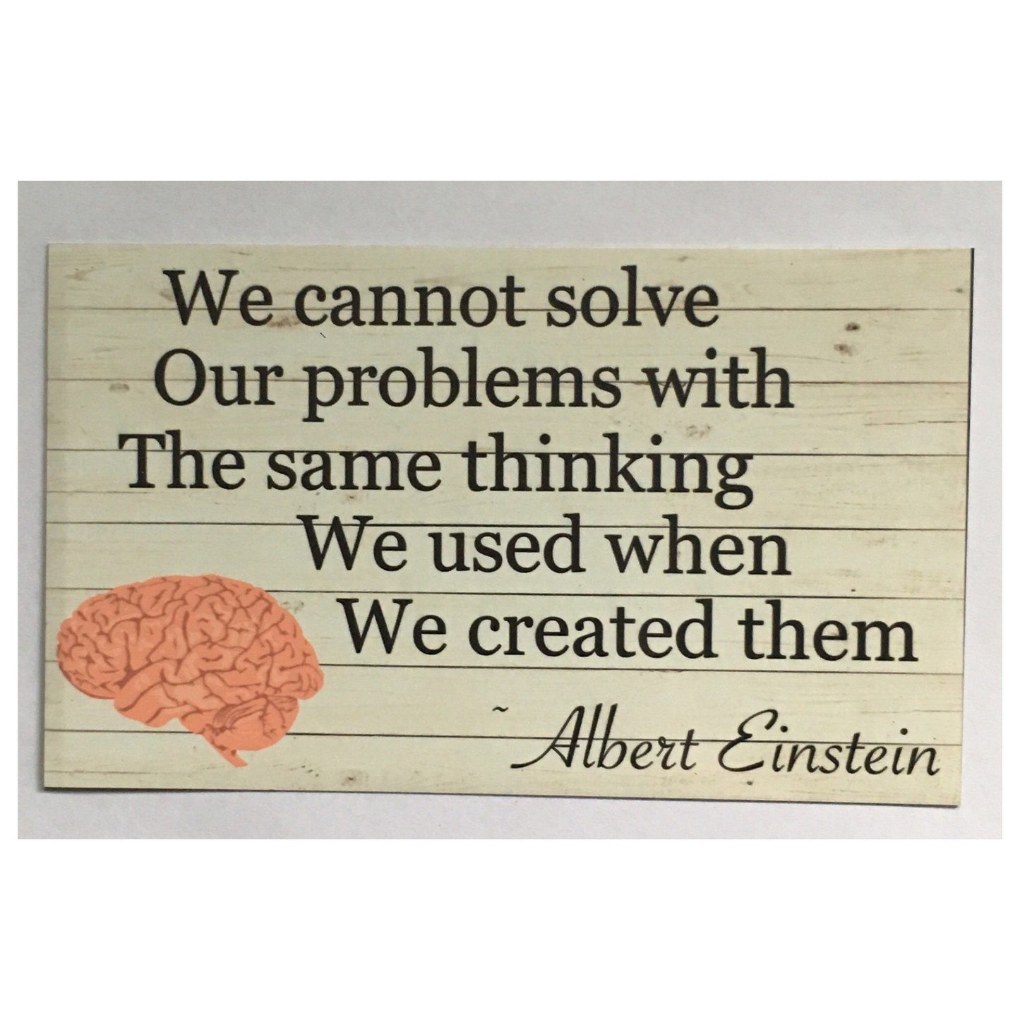 Encourage a shift in thinking with the Problems Thinking Quote Albert Einstein Sign. Embrace new ideas and perspectives to overcome challenges, inspired by the famous words of Albert Einstein.
