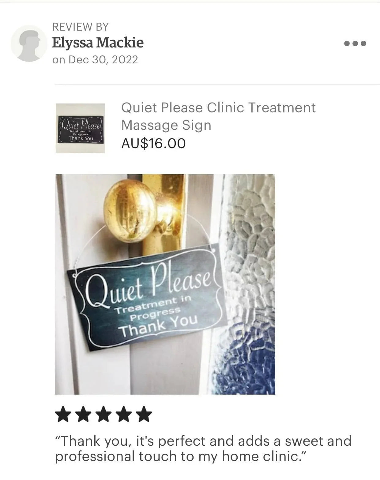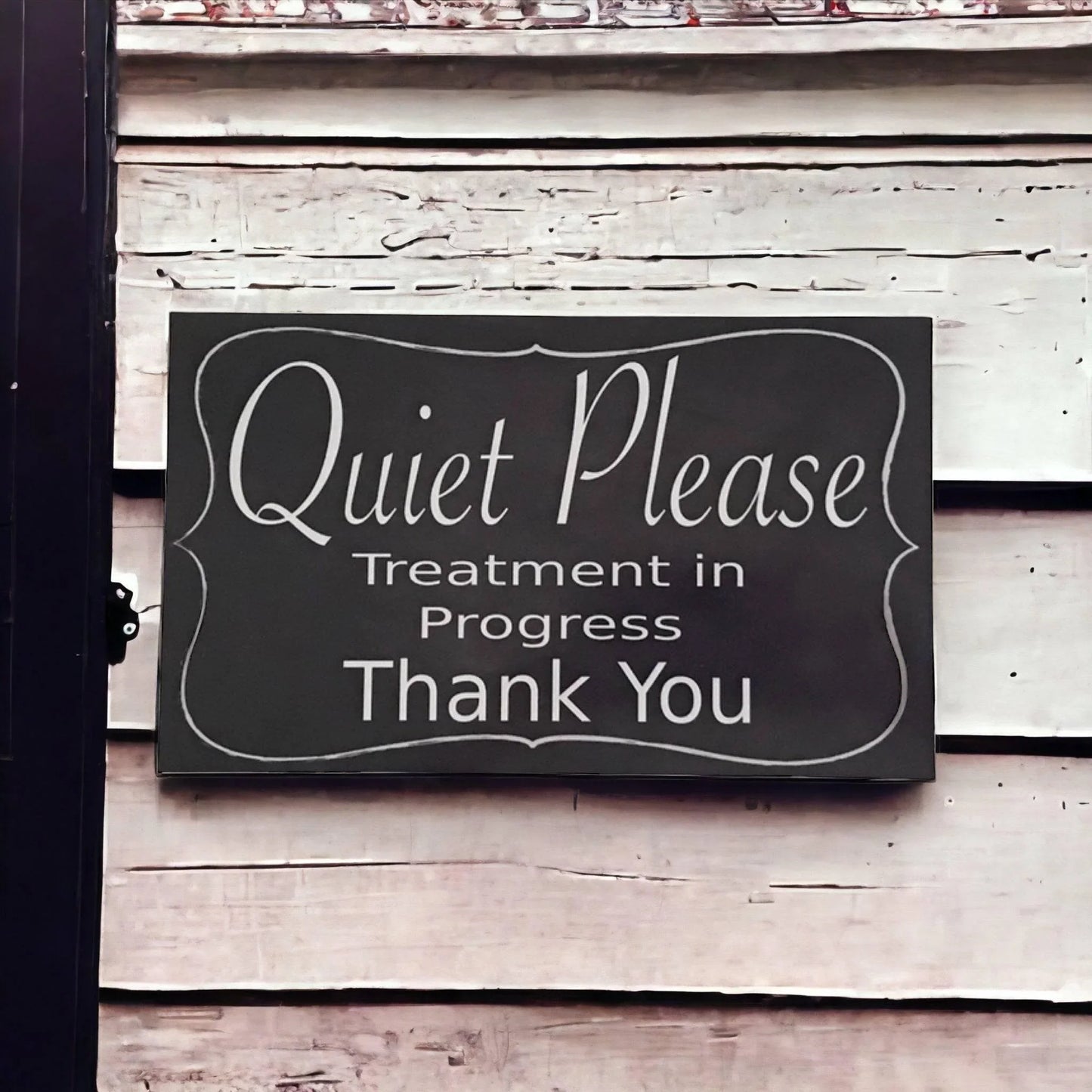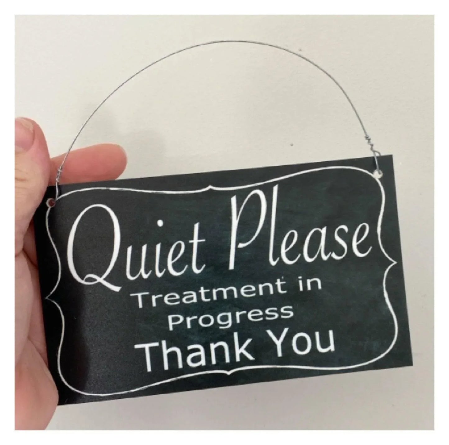 Quiet Please Clinic Treatment Massage Sign display on your business clinic door to remind anyone visiting to keep quiet. Minimize distractions and create a relaxing environment with our Quiet Please Clinic Treatment Massage Sign. Let your clients know that their peace and quiet is top priority.