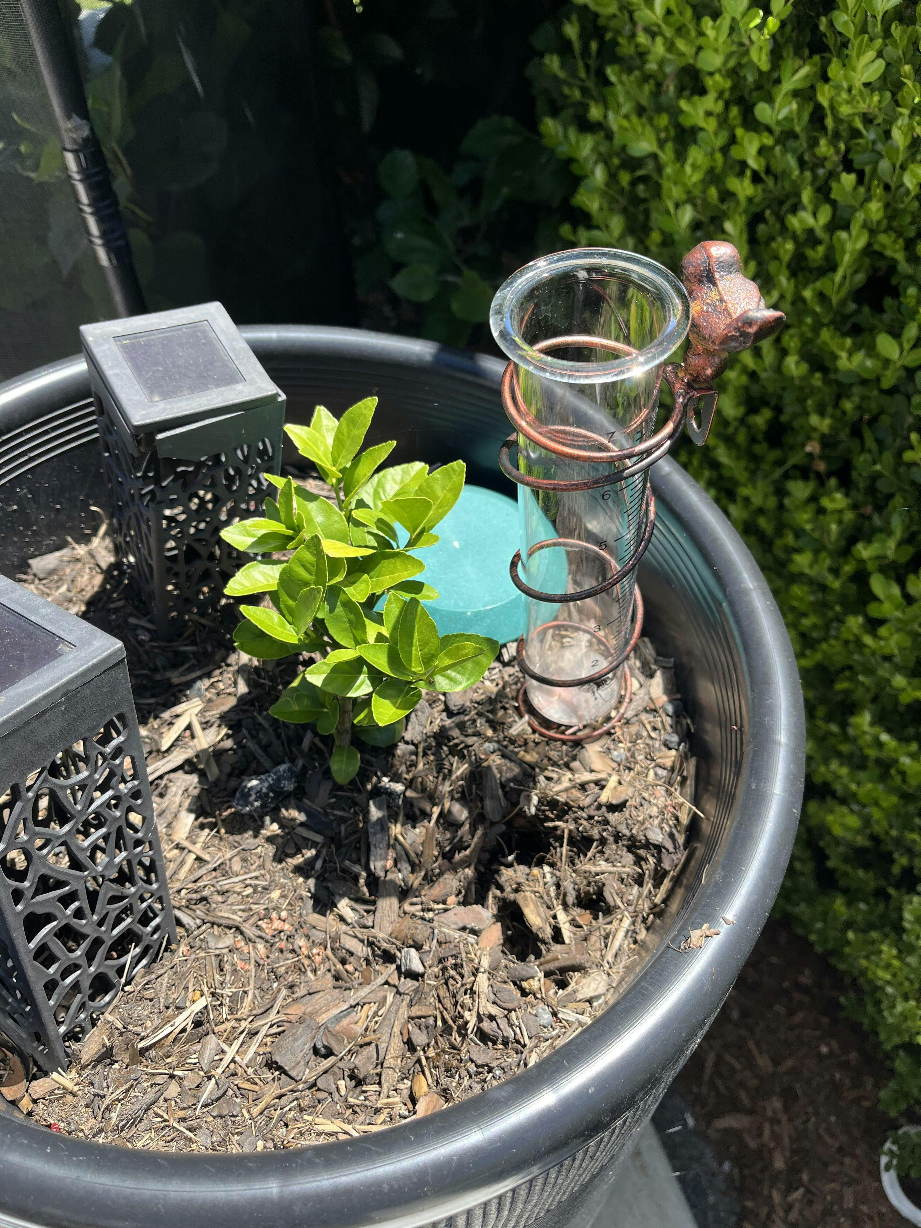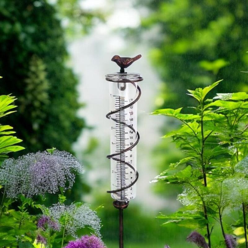 This is so lovely and has been very useful measuring recent rain - it secures well into ground but I decided to use mine inside a tall pot plant and it is attractive addition to the pot plant - and practical giving me an accurate recording of rain. Very easy to pull out the glass cylinder and the metal spiral is secure and strong. Would definitely recommend.