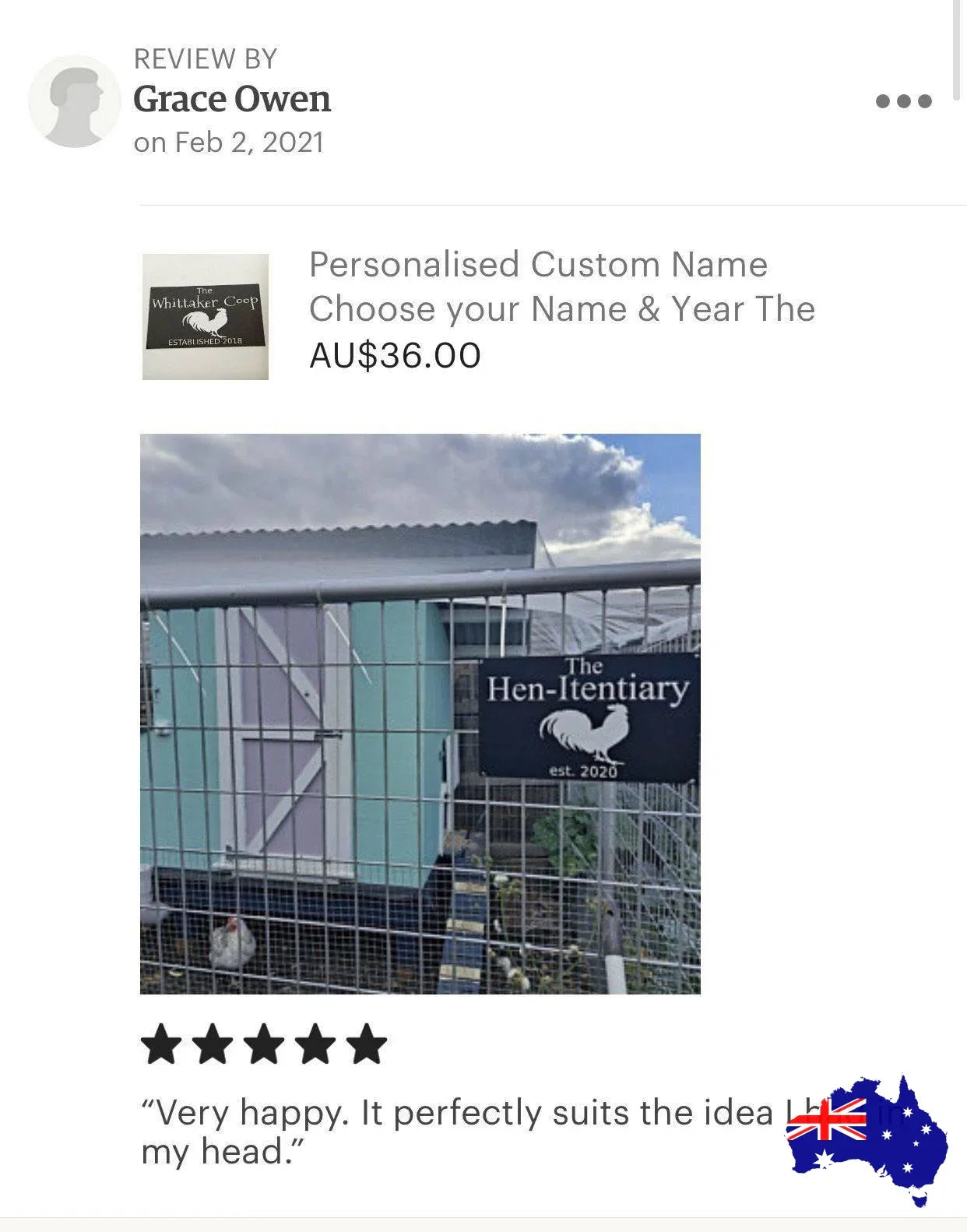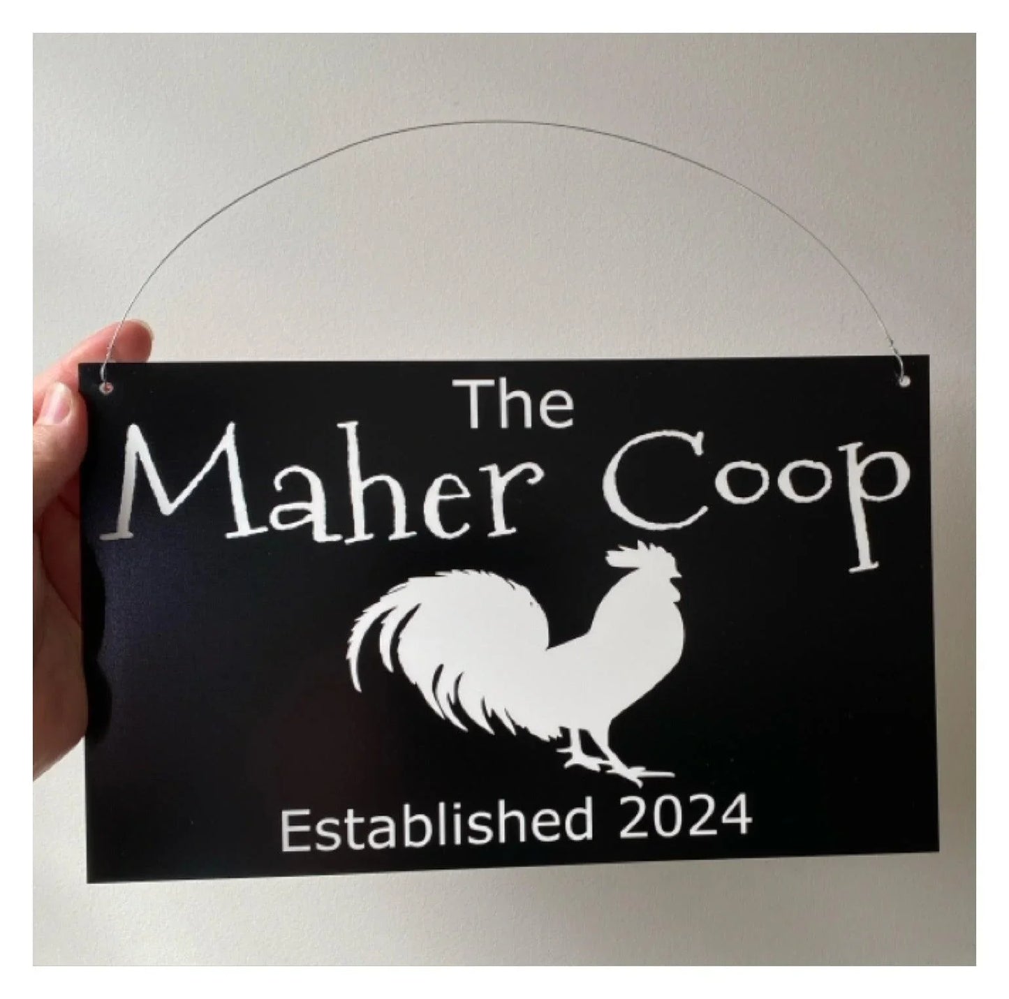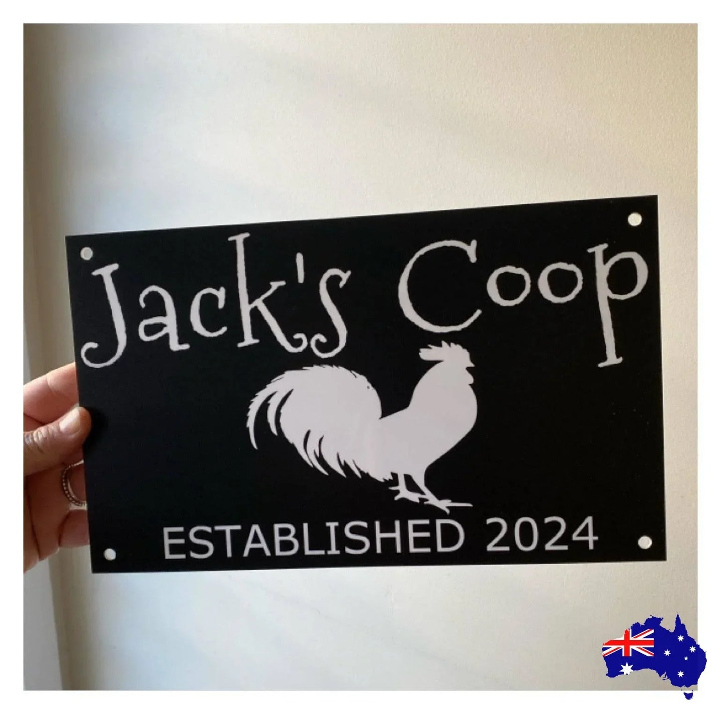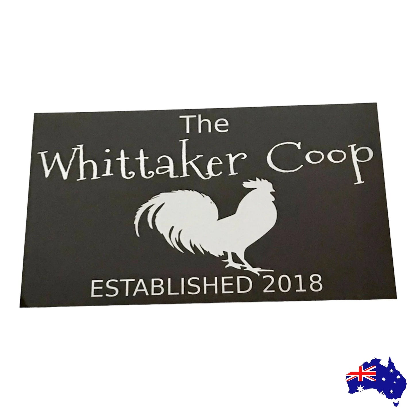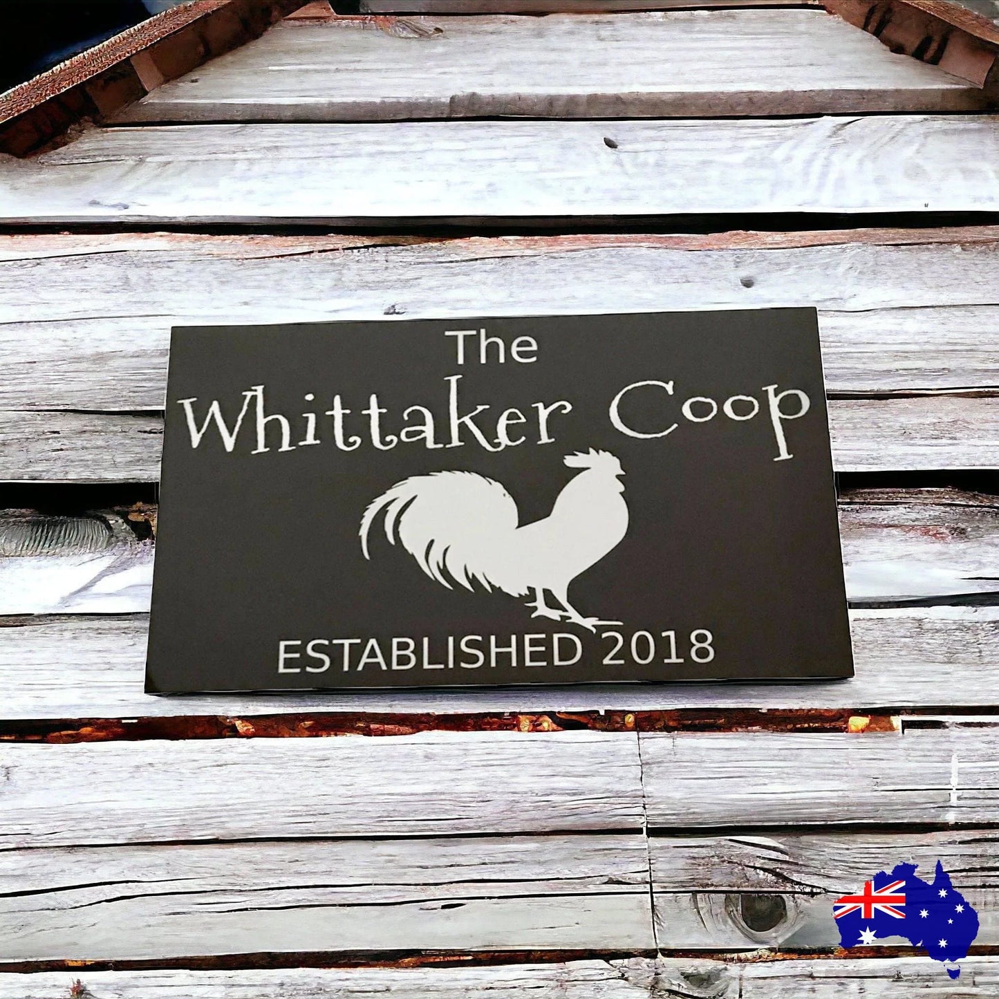 Enhance your backyard coop with Rooster Chicken The Coop Personalised Custom Sign. Make it unique by adding your family name, or choice of wording and the year you started raising chickens.