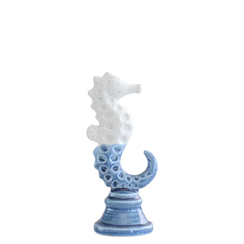 Seahorse Coastal Beach Ornament Blue White