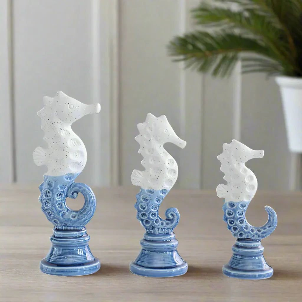Transform your living space into a coastal paradise with the addition of our Seahorse Coastal Beach Ornament Blue White. Enhance your home or office decor with these one-of-a-kind coastal piece that embody the essence of the Hamptons Coast Vibe. With five sizes to choose from, discover the perfect touch of coastal charm for your space. Sizes can be found in photos