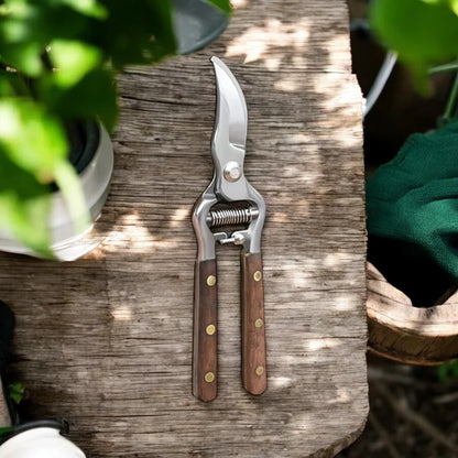 Secateurs Pruning Tool Wood Timber Garden - a must-have for any country to coast gardener. With stainless steel blades and elegant timber wooden handles, these gardening tools offer a sturdy and durable grip, while adding a touch of beauty to your gardening routine. Say farewell to rust and effortlessly trim your rose bushes, fruit trees and shrubs with both style and ease. Garden Tools are certainly a practical and thoughtful long lasting gift for any gardner you know! Approximate Size is 21cm x 5.5cm
