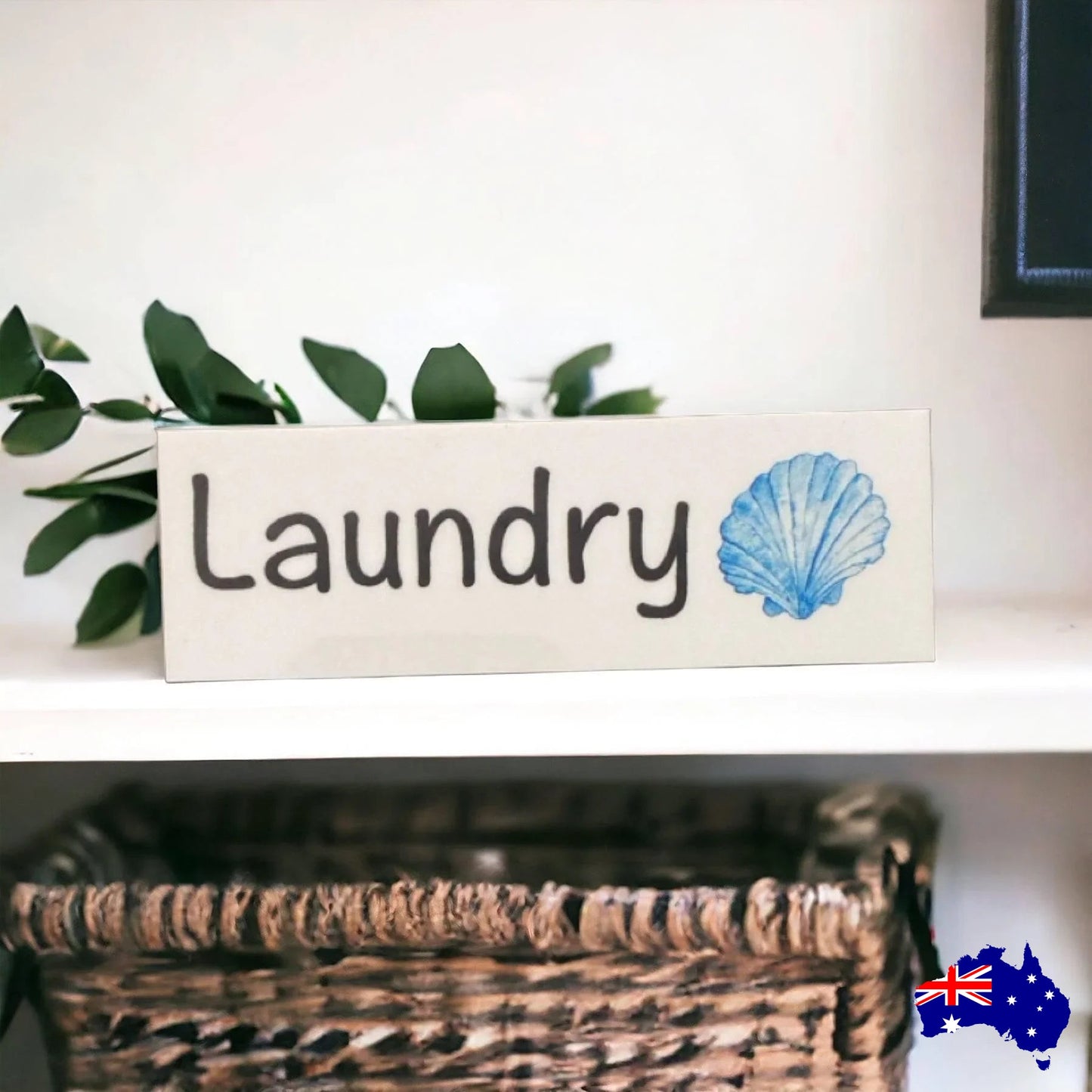 Shell Beach Blue Toilet Laundry Bathroom Sign