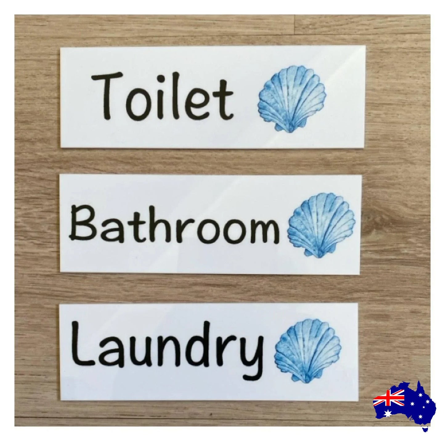 Shell Beach Blue Door Room Sign Toilet Laundry Bathroom